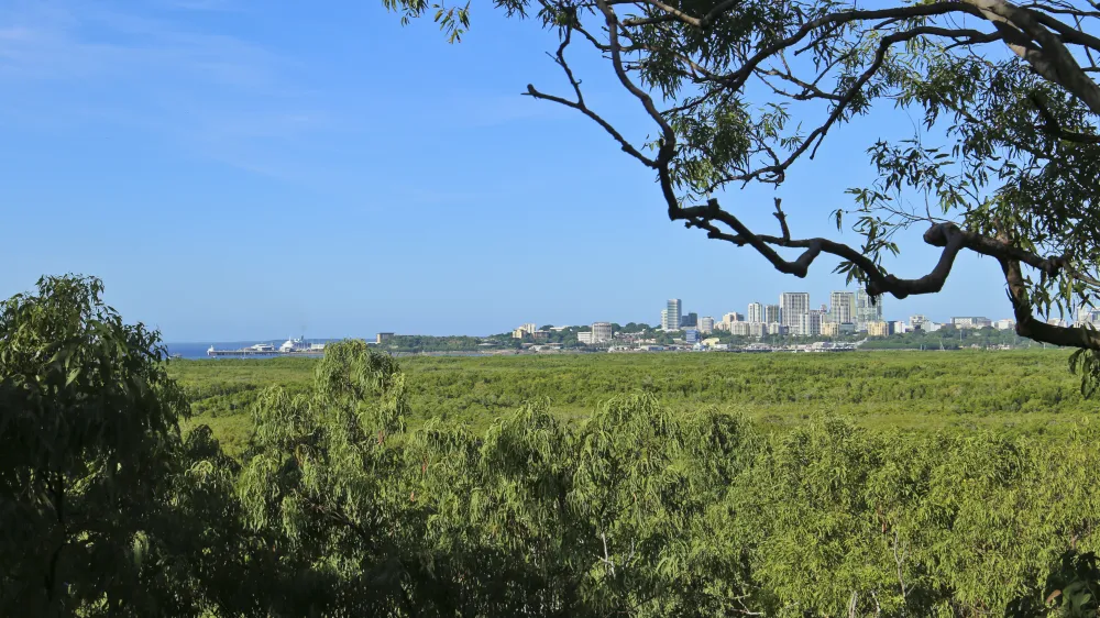 Im Charles Darwin National Park an der Frances Bay in Darwin können Sie nicht nur eines der bedeutendsten Feuchtgebiete Australiens entdecken, sondern auch durch ein Wander- und Radwegenetz der Geschichte Darwins nachgehen. Der Nationalpark war im Zweiten Weltkrieg ein wichtiger Militärstandort. An Informationstafeln erfahren Sie mehr über die Rolle Australiens im Krieg. Von der Aussichtsplattform des Nationalparks genießen Sie einen herrlichen Ausblick über das Areal und den Hafen Darwins.