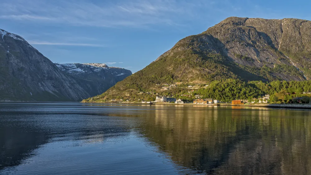 Eidfjord liegt am Ende des gleichnamigen Eidfjords, der die Verlängerung des Harangerfjords bildet. Der Hardangerfjord ist mit 179 Kilometern der zweitlängste Fjord Norwegens und wird auch „Queen of the Fjords“ genannt. Damit ist er ein echtes Highlight im Süden Norwegens auf Ihrer Norwegen Kreuzfahrt mit Phoenix Reisen. Genießen Sie die Natur- und Kulturschätze im und um das Zentrum von Eidfjord. Sehen Sie auf Ihrem Ausflug ab Eidfjord Hæreid, Westnorwegens größtes Gräberfeld aus der Eisen- und Wikingerzeit. Außerdem können Sie die mittelalterliche Kirche Gamle Kyrkje („Alte Kirche“), eine 1309 erbauten Steinkirche, besuchen.