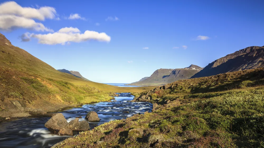 Die Monate von Juni bis August gelten als ideale Reisezeit für Eskifjörður. Angenehme Temperaturen, viel Tageslicht und oft ruhige See ermöglichen entspannte Landgänge und Ausflüge in die umliegende Fjordlandschaft. Besonders reizvoll sind die hellen Abende, wenn das Licht die Berge in sanfte Farben taucht.
