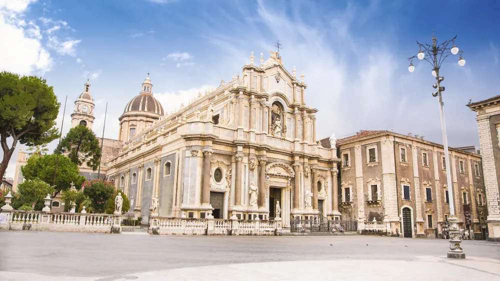 Am Fuße des Ätna befindet sich Siziliens zweitgrößte Stadt Catania. Catania erreichen Sie in etwa einer Fahrtstunde ab Giardini-Naxos und beeindruckt mit barocken Bauten wie der Kathedrale von Catania, dem Brunnen Fontana di Proserpina oder der Villa Bellini. Schlendern Sie über den Piazza Verga oder durch die Via Etnea, genießen Sie ein italienisches Eis in der schönen Altstadt Catanias und lassen Sie es sich gutgehen.