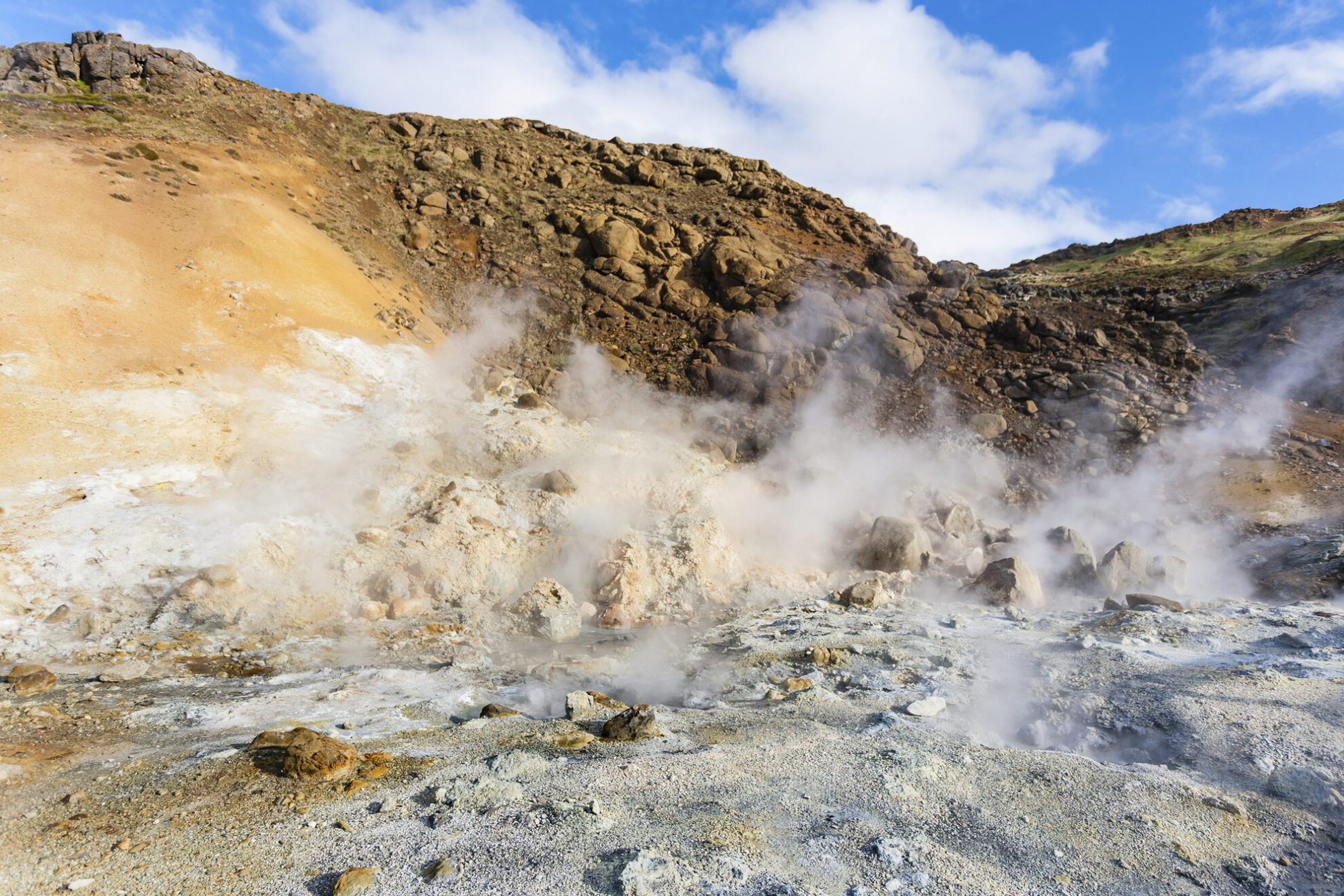 Der Grund, warum sich die isländischen Gletscher fortlaufend verändern, liegt neben den Klimaveränderungen auch daran, dass unter jedem Gletscher in Island ein oder sogar mehrere, zum Teil aktive, Vulkane liegen. Was nicht weiter verwunderlich ist, da Island vor weniger als 20 Millionen Jahren aus einer riesigen Magmablase heraus entstanden ist. Von einem gewaltigen Vulkangürtel durchzogen liegt die Insel zudem noch mitten auf einem sogenannten Hot-Spot, der permanent heißes Magma vom Meeresboden hinauf auf die Insel pumpt. Neben kargen Vulkanlandschaften mit Lavafeldern bestimmen unzählige heiße Thermal-Quellen, aufgeheizte Bäche, Geysire und zum Bad einladende Lagunen ebenfalls die Landschaft der Insel.