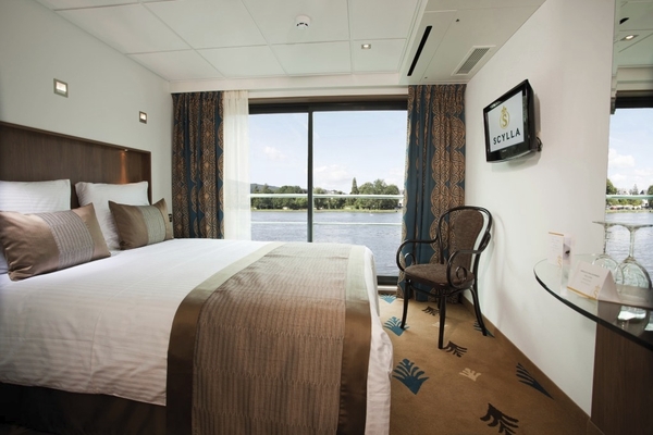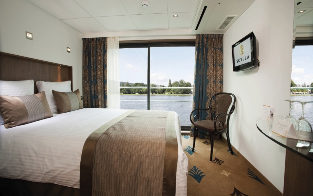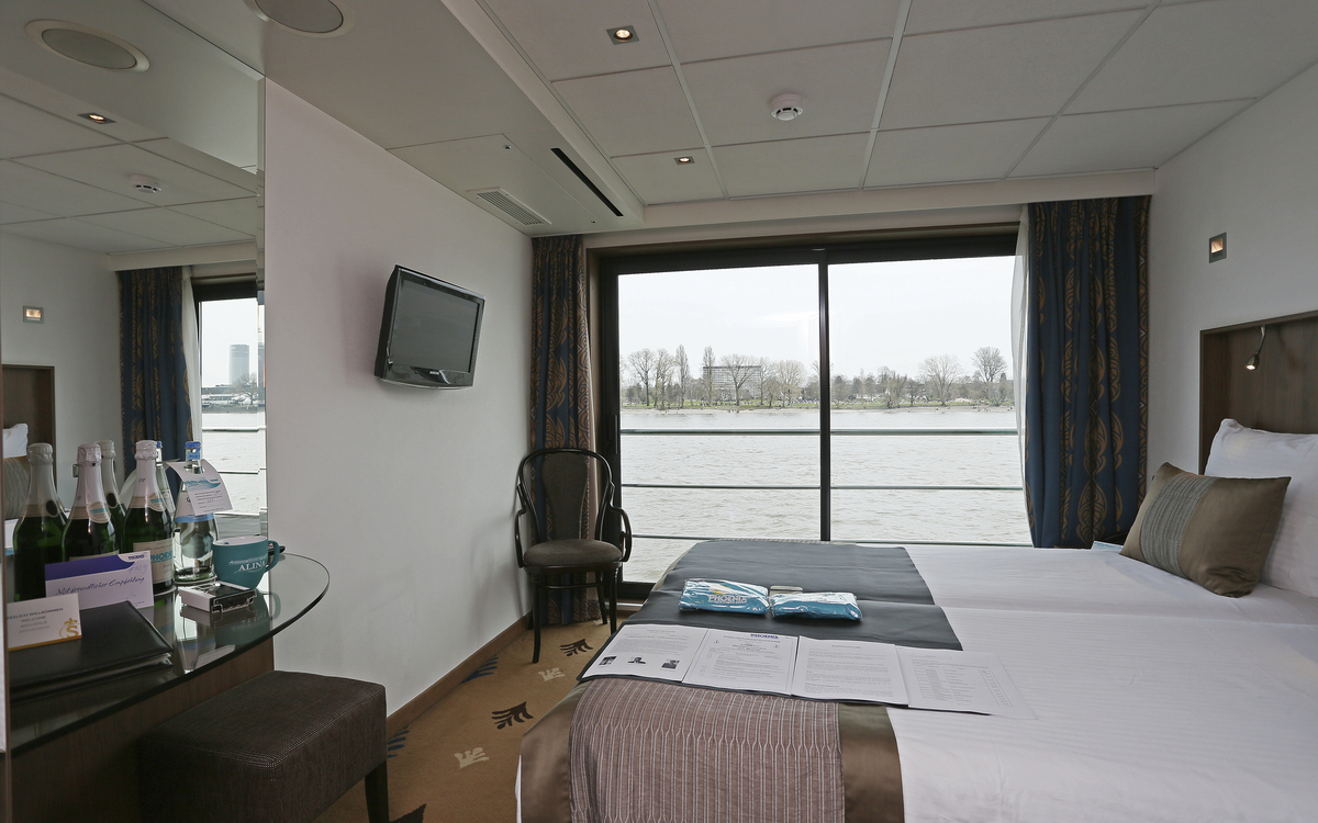 Alle Kabinen liegen außen, sind komfortabel und elegant eingerichtet mit französischem Balkon, raumhoher Fensterfront und Schiebetür.