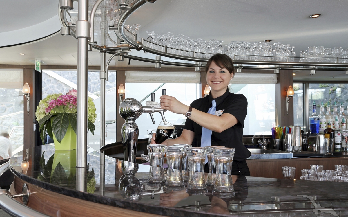 Zahlreiche Mitarbeiter in Küche und Restaurant sorgen täglich für Ihr leibliches Wohl an Bord. Genussvolle Menüs durch fest eingespielte Küchenteams werden für Sie zubereitet. "Essen, was das Herz begehrt" - Zahlreiche Mahlzeiten von früh bis spät - einschließlich Nachmittags-Kaffeezeit,