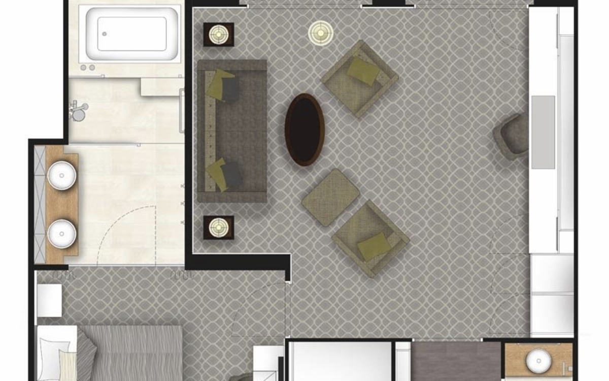 Es gibt ein separates Schlafsofa (ausziehbar für 2 Personen) mit Tisch und 2 Sesseln, einen begehbaren Kleiderschrank, Spiegelkommode mit mehreren Schubfächern, Dusche/WC, Duschgel/Schampoo, Bademantel, Fön, SAT-TV (Empfang abhängig vom Fahrgebiet), individuell regulierbare Klimaanlage, Telefon, Safe, Kaffee-Maschine (inklusive Kapseln), Minibar mit Getränkeauswahl (kostenlos),