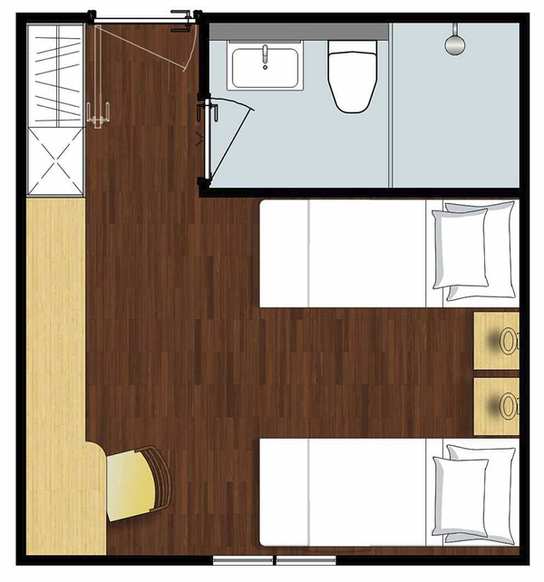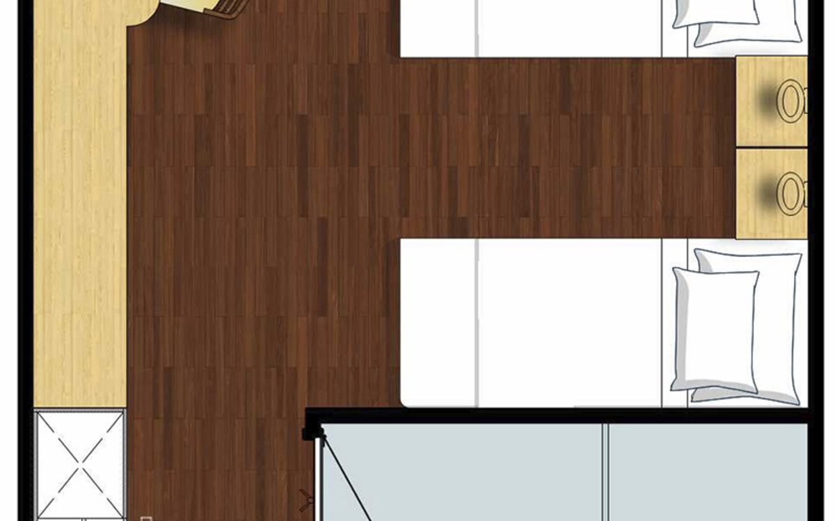Die Betten können auf Wunsch getrennt oder zu einem Doppelbett zusammengestellt werden.