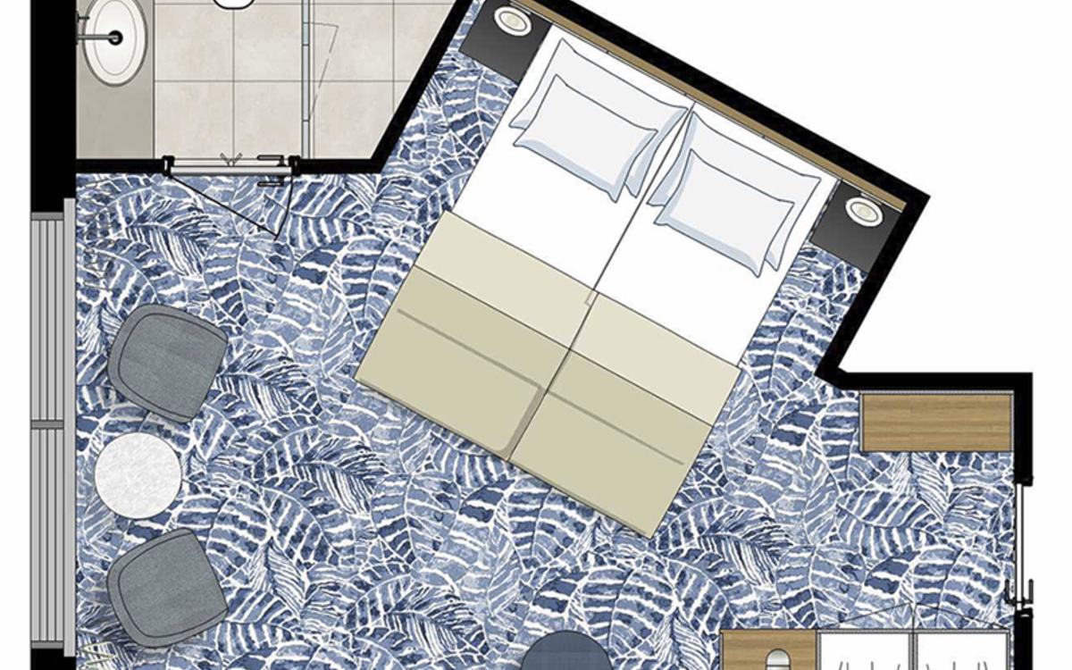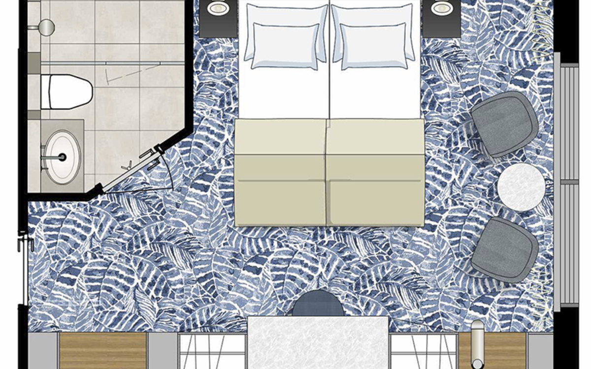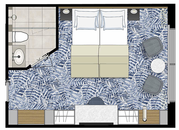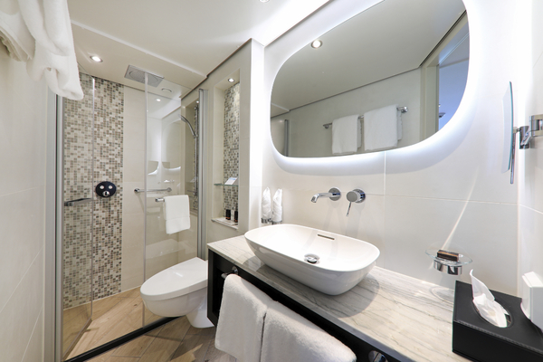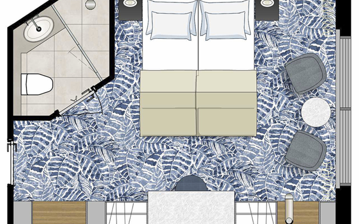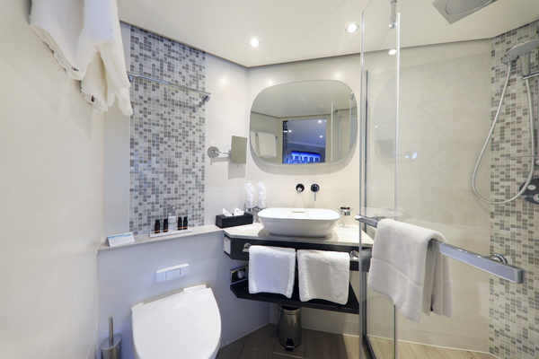 Ausstattung: Dusche/WC/Fön, Klimaanlage, TV/Bordradio, Minibar, Kaffeemaschine, Safe, Telefon, Bordspannung 220V Wechselstrom. Kabinengröße ca. 18,5 qm.