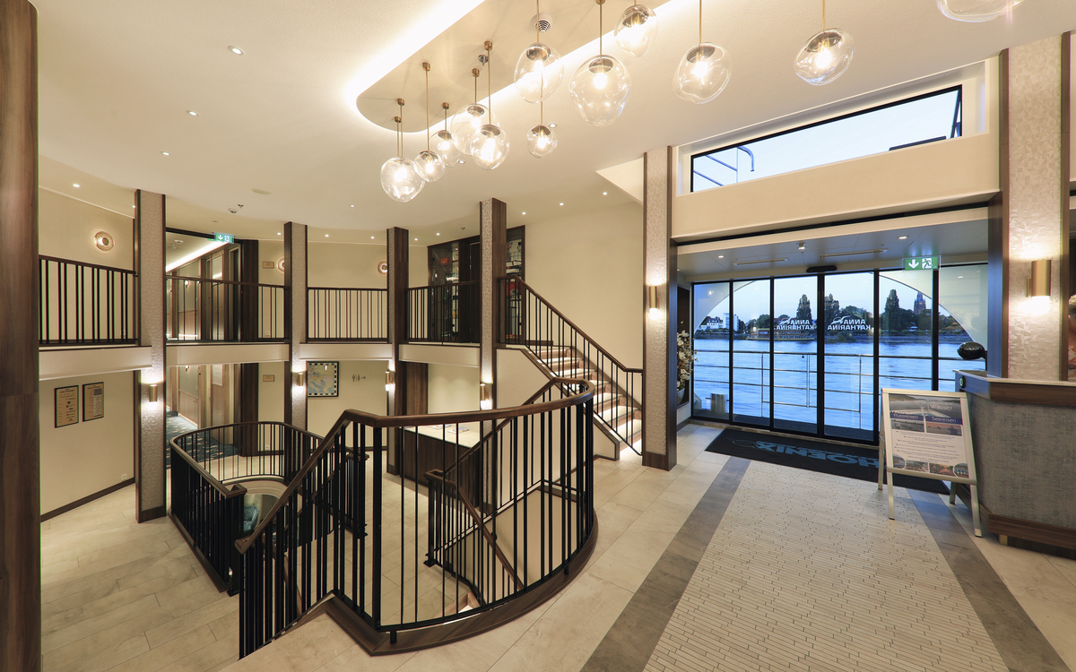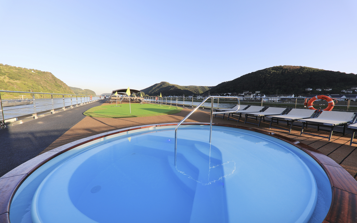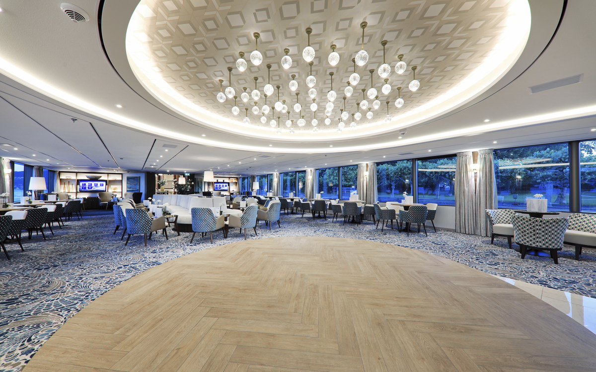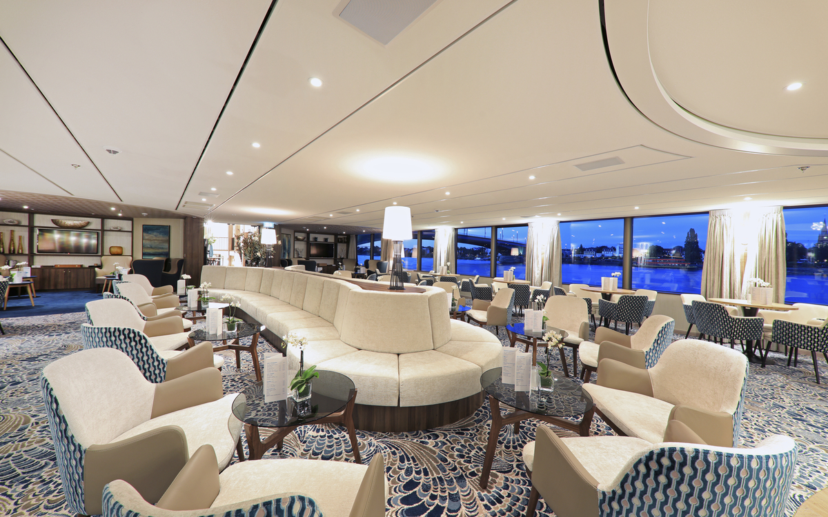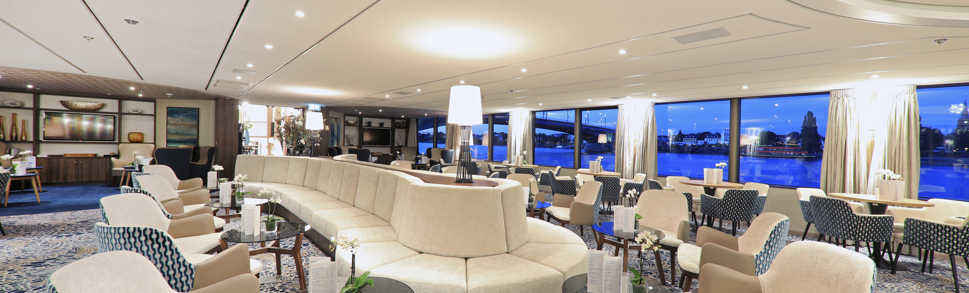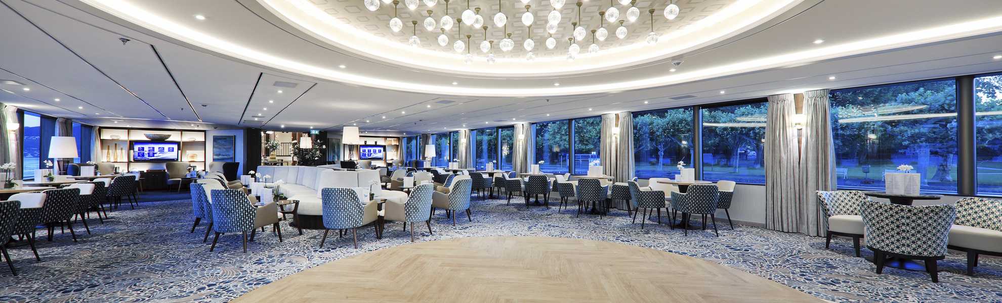 Elegante Räumlichkeiten auf 4 Passagierdecks verteilt. Stilvoll eingerichtete Panorama-Lounge mit Bar, Panorama-Restaurant ”Vier Jahreszeiten“ (eine Tischzeit), elegante Heckbar und Heckrestaurant mit Außenterrasse. Atrium-Lobby mit Rezeption, kleine Boutique und Ausflugsbüro, Sauna, Dampfbad, kleiner Fitnessbereich, Friseur, Wäscheservice, großflächiges Sonnendeck mit kleinem Pool, Liegestühle, Sitzgruppen, Schattenplätze und Sitzterrasse vorne sowie Barservice und kleine Aussichtsterrasse am Bug, WLAN (kostenpflichtig), je nach Fahrgebiet kann es ggf. zu Ausfällen/Störungen kommen.