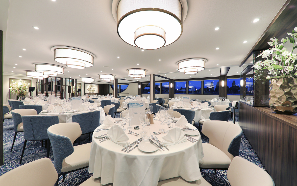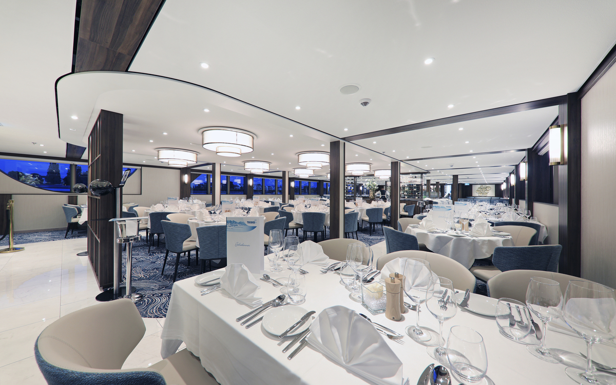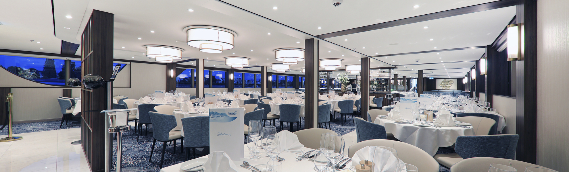 Zahlreiche Mitarbeiter in Küche und Restaurant sorgen täglich für Ihr leibliches Wohl an Bord. Genussvolle Menüs durch fest eingespielte Küchenteams werden für Sie zubereitet. "Essen, was das Herz begehrt" - Zahlreiche Mahlzeiten von früh bis spät - einschließlich Nachmittags-Kaffeezeit, Kapitänsempfang und Kapitäns-Dinner mit festlichem Menü. Essen ohne eng gefasste Essenszeiten immer in einer Tischzeit! Auf Wunsch servieren wir Ihnen auch Gerichte für spezielle Diäten (Diabetiker, Glutenfrei, Laktosefrei, Vegan etc.)