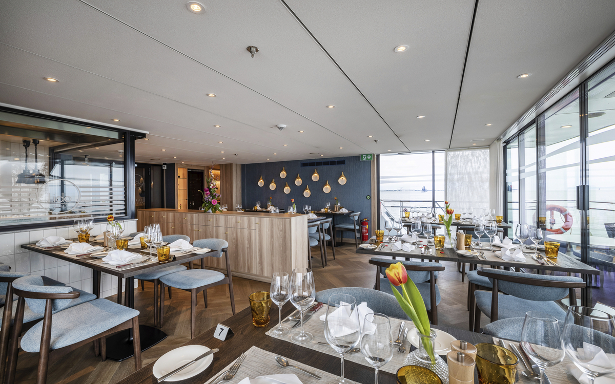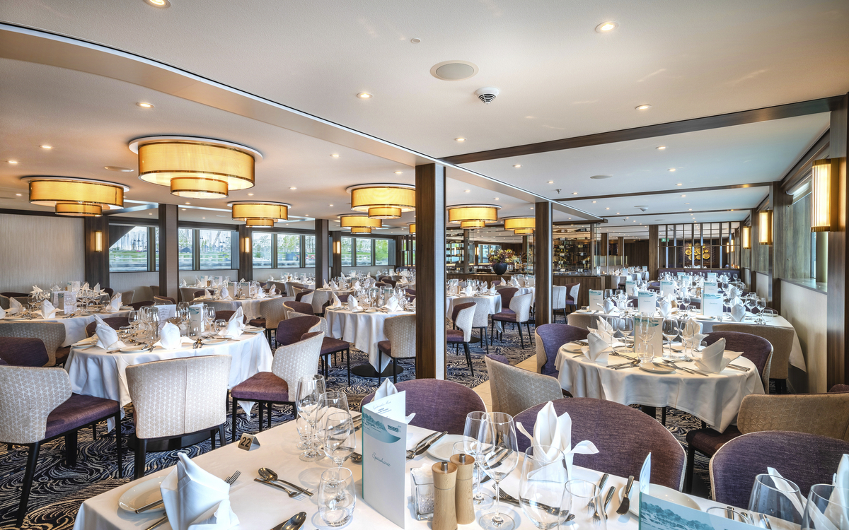 MS Annika verfügt entsprechend ihrer Kategorie über ein komfortables und zugleich gemütliches Restaurant. Große Fensterfronten für tolle Ausblicke auch während der Mahlzeiten Ein aufmerksames Restaurant- und Küchenteam kümmert sich à la carte oder in Buffetform um Ihr kulinarisches Wohlergehen. Neben der festen Tischplatzwahl bieten wir offene lange Tischzeiten an.