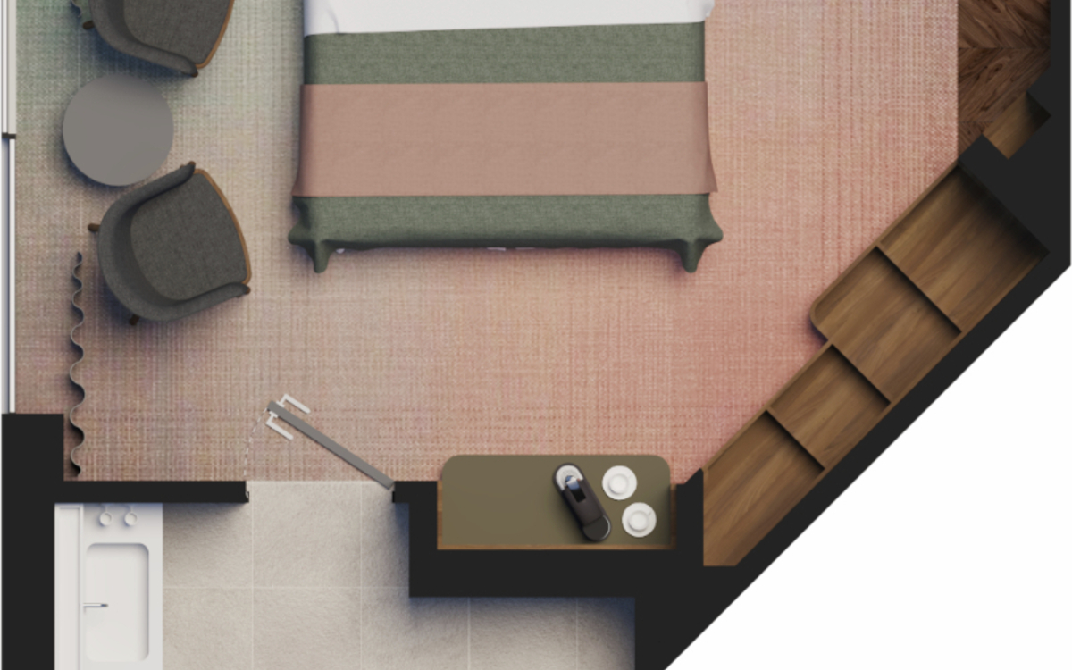 Ausstattung: Dusche/WC, Fön, individuell regulierbare Klimaanlage, SAT-TV (Flachbildschirm), Radio, Kaffeemaschine, Minibar, Safe, Telefon, Bordspannung 230 V Wechselstrom.