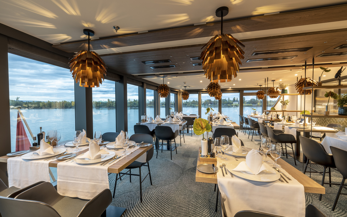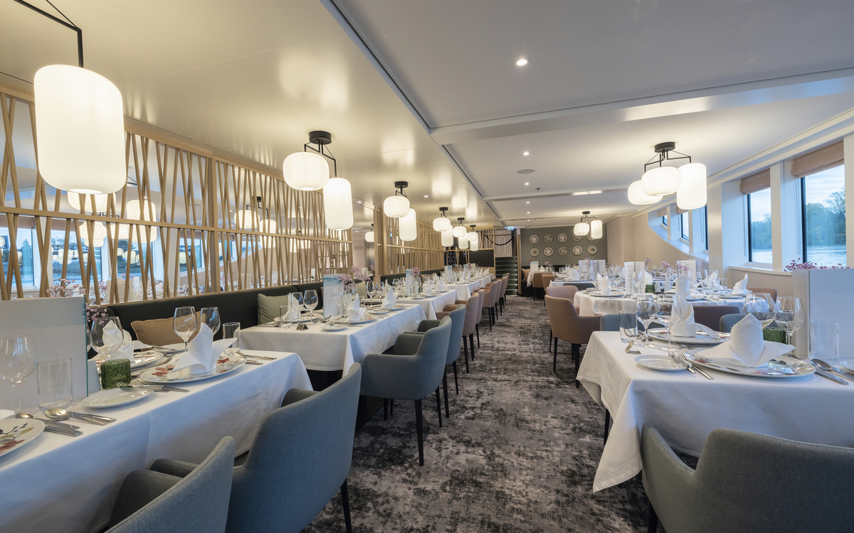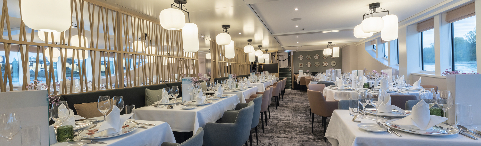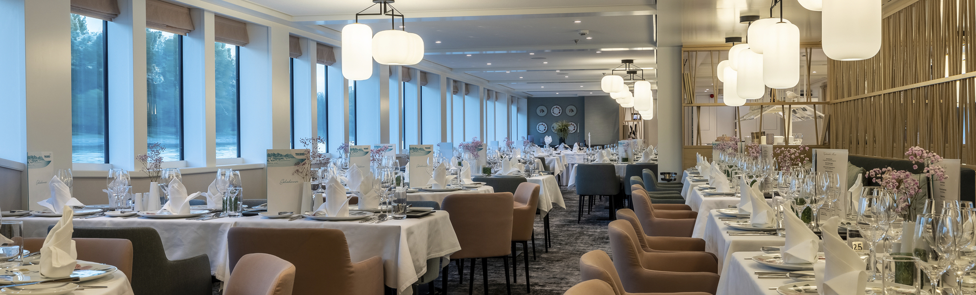 MS Antonia verfügt über ein komfortables und zugleich gemütliches Restaurant. Ein aufmerksames Restaurant- und Küchenteam kümmert sich à la carte um Ihr kulinarisches Wohlergehen. Zum Abendessen reservierte Plätze, Spezialitäten-Restaurant ohne Aufpreis.