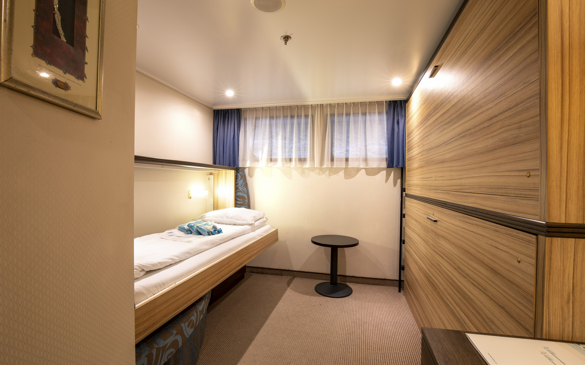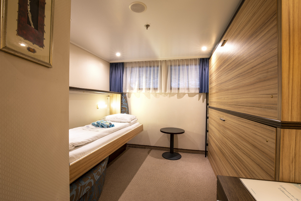 Austattung: Dusche/WC, Föhn, individuell regulierbare Klimaanlage, SAT-TV, Radiokanal, Safe, Telefon, kleine Tageszeitung, Bordspannung 230 V Wechselstrom. Die Betten auf dem Saturn- und Oriondeck lassen sich wahlweise als Doppel- oder Einzelbetten stellen.