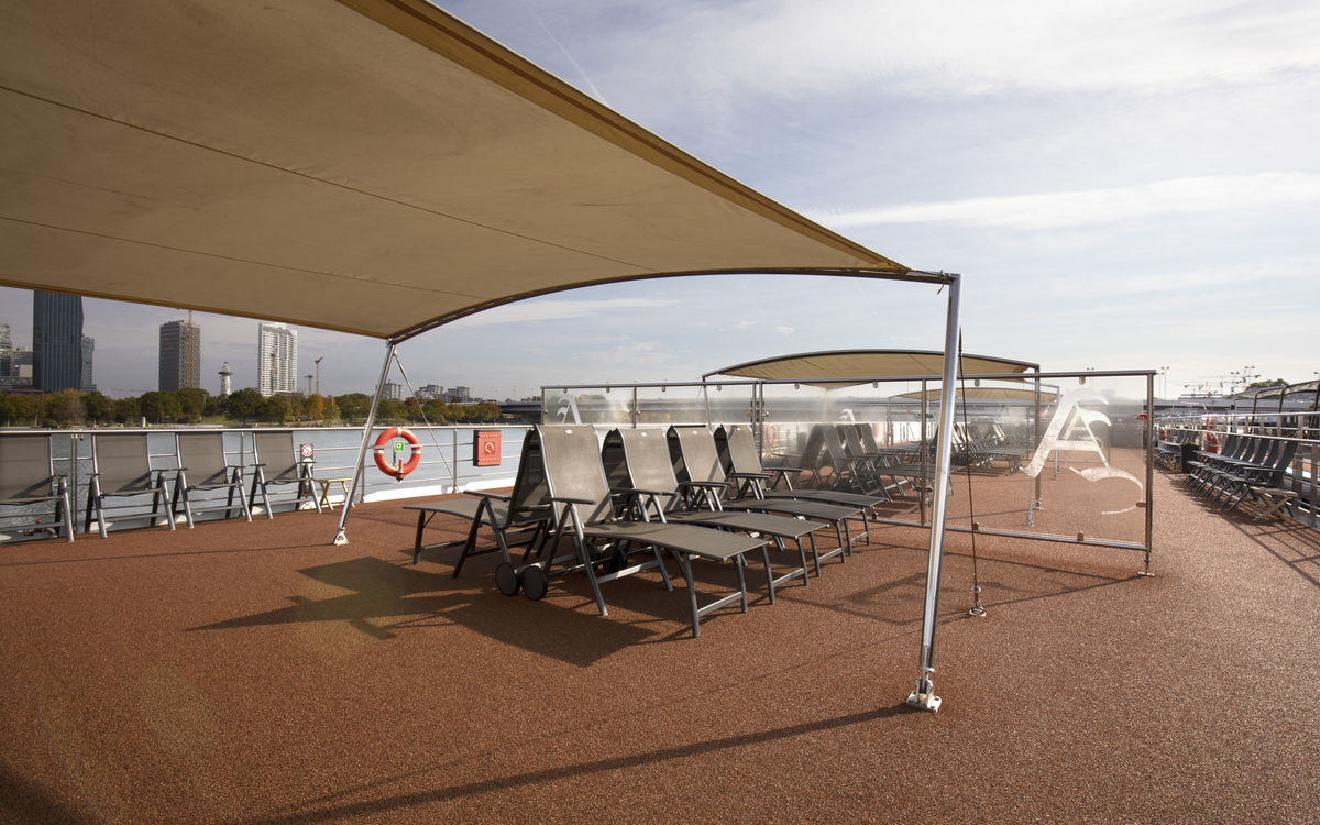 Auf bestimmten Flussabschnitten (z.B. Main, Neckar, in Frankreich) sind zum Teil sehr niedrige Brücken zu passieren. Die Schiffsbesatzung trifft entsprechende Vorkehrungen, baut Reling und Windfang ab und versenkt die Brücke hydraulisch zur Gewährleistung einer sicheren Durchfahrt. Vorübergehend kann es zur Sperrung des Sonnendecks kommen. Das Betreten ist dann im Sinne Ihrer eigenen Sicherheit nicht möglich.