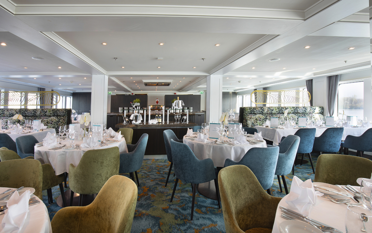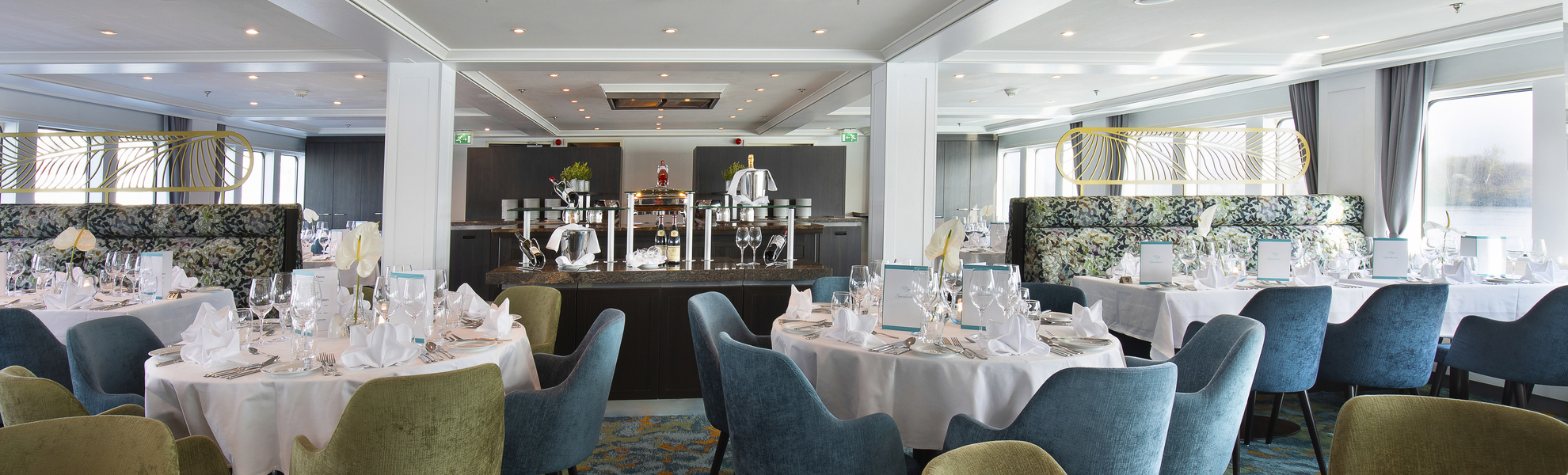 Alle Schiffe verfügen entsprechend ihrer Kategorie über komfortable und zugleich gemütliche Restaurants. Oft sorgen große Fensterfronten für tolle Ausblicke auch während der Mahlzeiten Ein aufmerksames Restaurant- und Küchenteam kümmert sich à la carte oder in Buffetform um Ihr kulinarisches Wohlergehen. Neben der festen Tischplatzwahl bieten wir offene lange Tischzeiten.