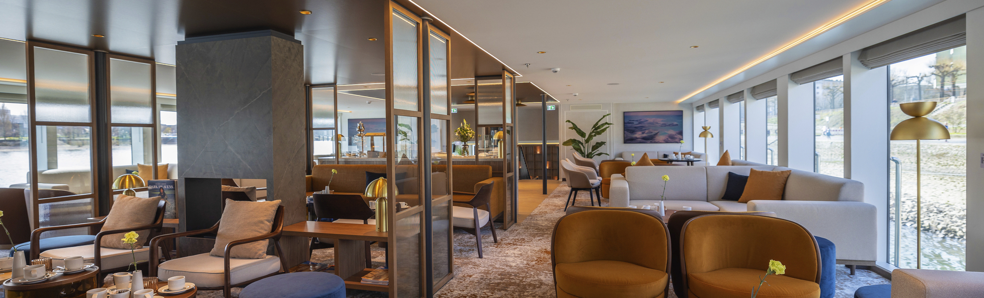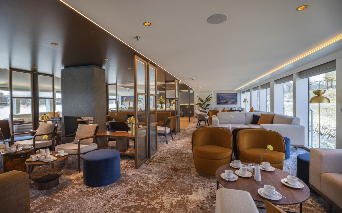 Die großen Kabinen, überwiegend mit französischem Balkon, laden zum Entspannen und Erholen ein. Die schicken Räumlichkeiten sind lichtdurchflutet, stilvoll, aber nicht überladen eingerichtet und bieten ein angenehmes Ambiente. MS Aurelia verfügt über vier Passagierdecks, 92 geräumige Kabinen mit französischem Balkon, große und helle Räumlichkeiten mit stilvoll eingerichteter Panorama-Lounge mit Bar, Lobby mit Rezeption.