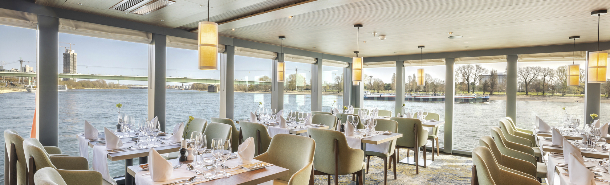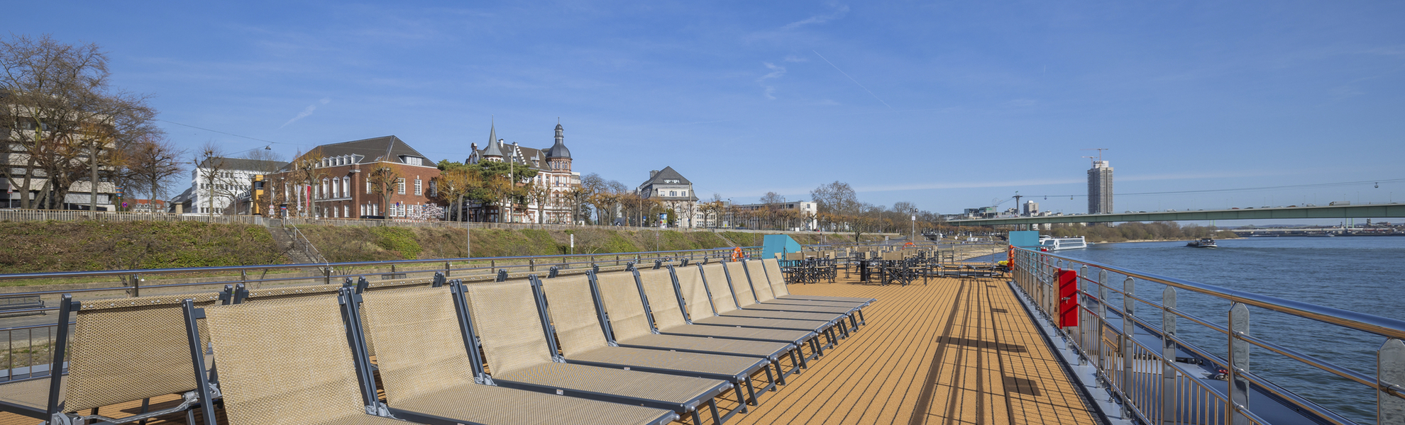 Auf bestimmten Flussabschnitten (z.B. Main, Neckar) sind zum Teil sehr niedrige Brücken zu passieren. Die Schiffsbesatzung trifft entsprechende Vorkehrungen, baut Reling und Windfang ab und versenkt die Brücke hydraulisch zur Gewährleistung einer sicheren Durchfahrt. Vorübergehend kann es zur Sperrung des Sonnendecks kommen. Das Betreten ist dann im Sinne Ihrer eigenen Sicherheit nicht möglich.