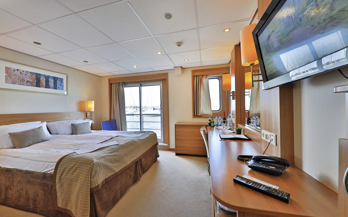 Alle Kabinen liegen außen, haben Panaroamafenster zum Öffnen und sind komfortabel und geschmackvoll eingerichtet. Die Komfort-Kabinen verfügen über einen französischem Balkon.