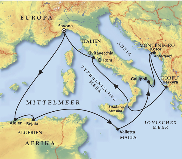 Savona - Algier - Valletta - Kotor - Korfu - Civitavecchia - Savona