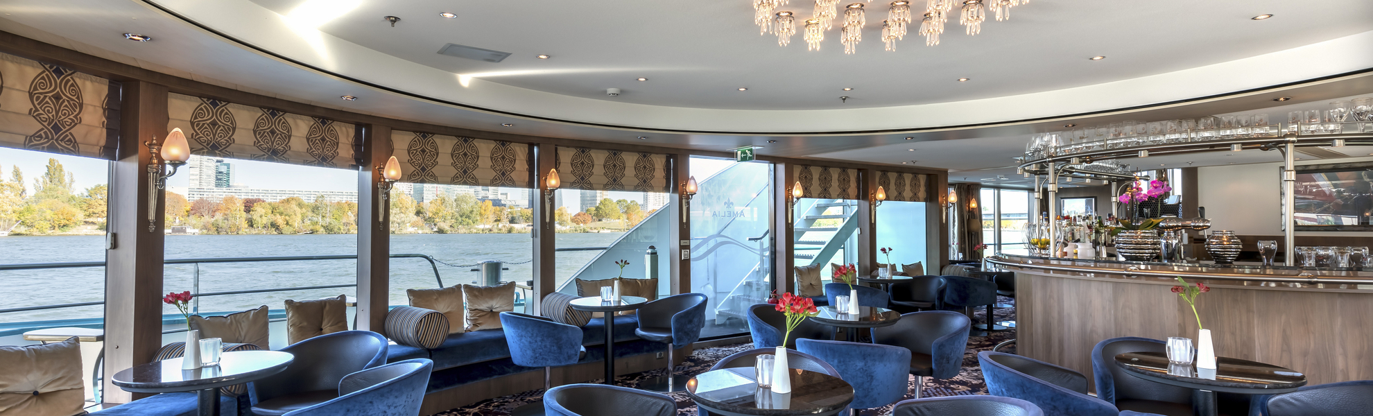 Alle Kabinen liegen außen, sind komfortabel und elegant eingerichtet mit französischem Balkon, raumhoher Fensterfront und Schiebetür. Diese Kabinen verfügen über ein Doppelbett.