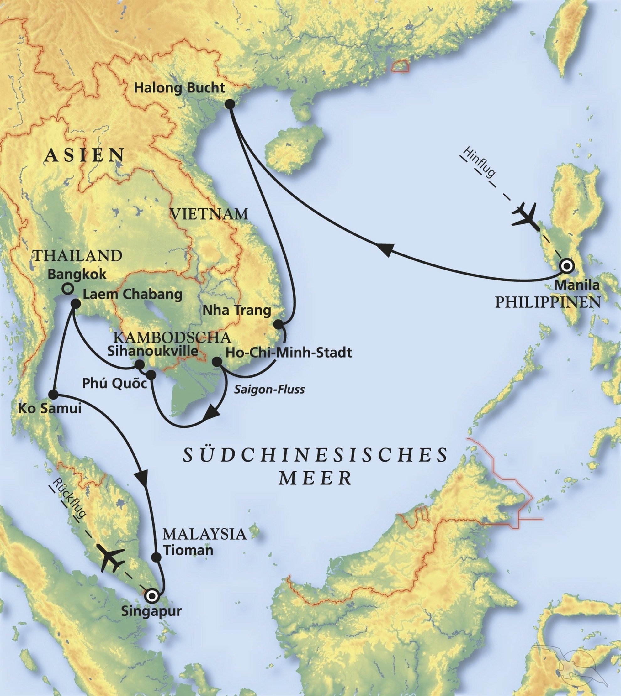 Manila - Halong Bucht - Nha Trang - Ho-Chi-Minh-Stadt - Laem Chabang - Ko Samui - Singapur
