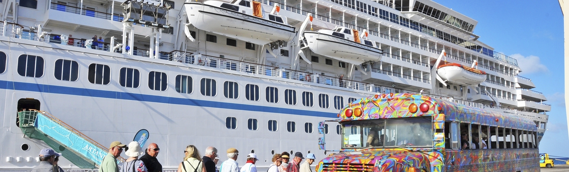 Während einer Rundfahrt durch St. John's lernen Sie das pulsierende westindische Handelszentrum und Herzstück Antiguas kennen. Im Anschluss fahren Sie in südlicher Richtung durch mehrere kleine Ortschaften in den südlichen, hügeligen Teil Antiguas. Sie bekommen die üppige Vegetation der Insel zu sehen und genießen u.a. die Aussicht vom Horsford Hill auf den Hafen von Falmouth. Angekommen an der Südküste passieren Sie den Ort Old Road, eine der ersten britischen Siedlungen im 17. Jh. Während Ihrer Rückfahrt zum Schiff sehen Sie einige der 365 berühmten Strände der Insel und genießen spektakuläre Aussichten.