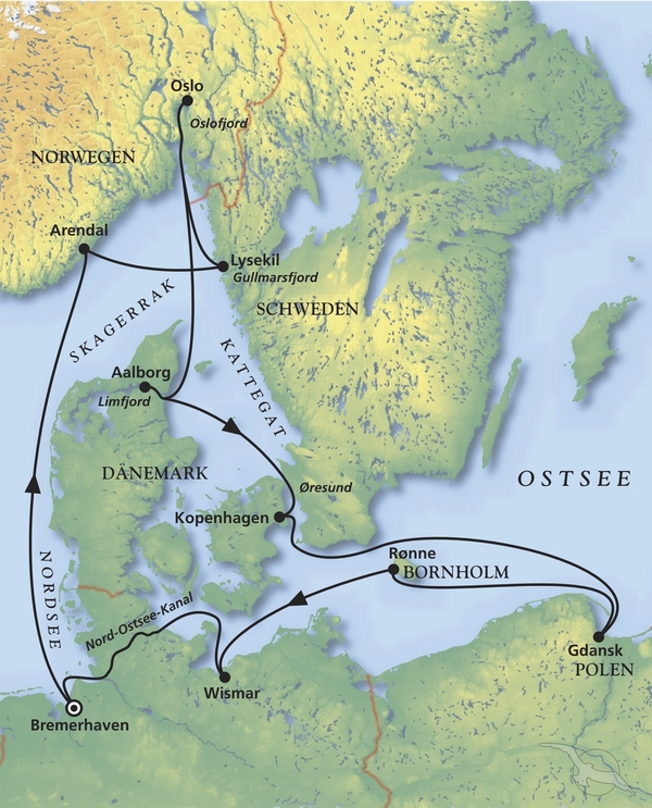 Bremerhaven - Arendal - Lysekil - Oslo - Aalborg - Kopenhagen - Danzig - Bornholm - Wismar - Bremerhaven