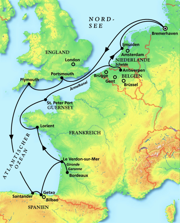 Bremerhaven - Portsmouth - Santander - Bordeaux - Guernsey - Antwerpen - Bremerhaven