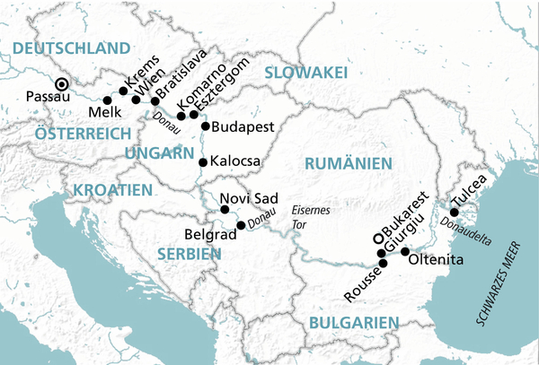 Passau - Wien - Budapest - Belgrad - "Eisernes Tor" - Giurgiu - Donaudelta - Rousse - Bratislava - Krems - Passau