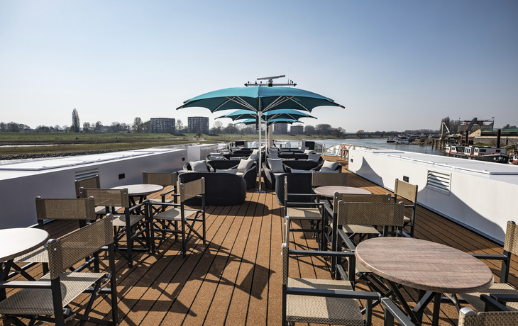Alle Kabinen liegen außen, sind komfortabel sowie luxuriös eingerichtet und haben einen französischen Balkon. Die Betten lassen sich wahlweise als Doppel- oder Einzelbetten stellen.