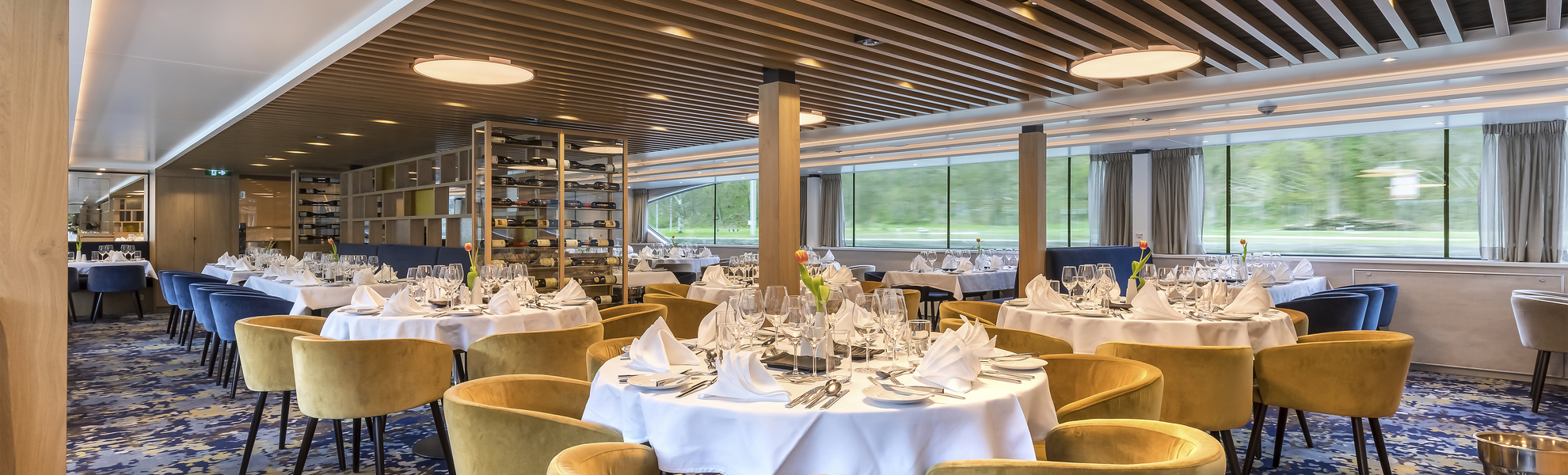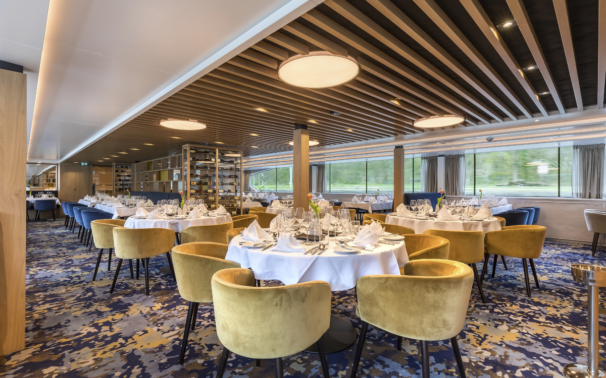 • Vollpension mit Menüwahl an Bord (beginnend mit dem Abendessen des ersten Tages und endend mit dem Frühstück am letzten Tag): Frühstücksbuffet, mehrgängiges Mittag- und Abendessen, Nachmittagskaffee/Tee, Mitternachtssnack. Gehobene europäische Küche.