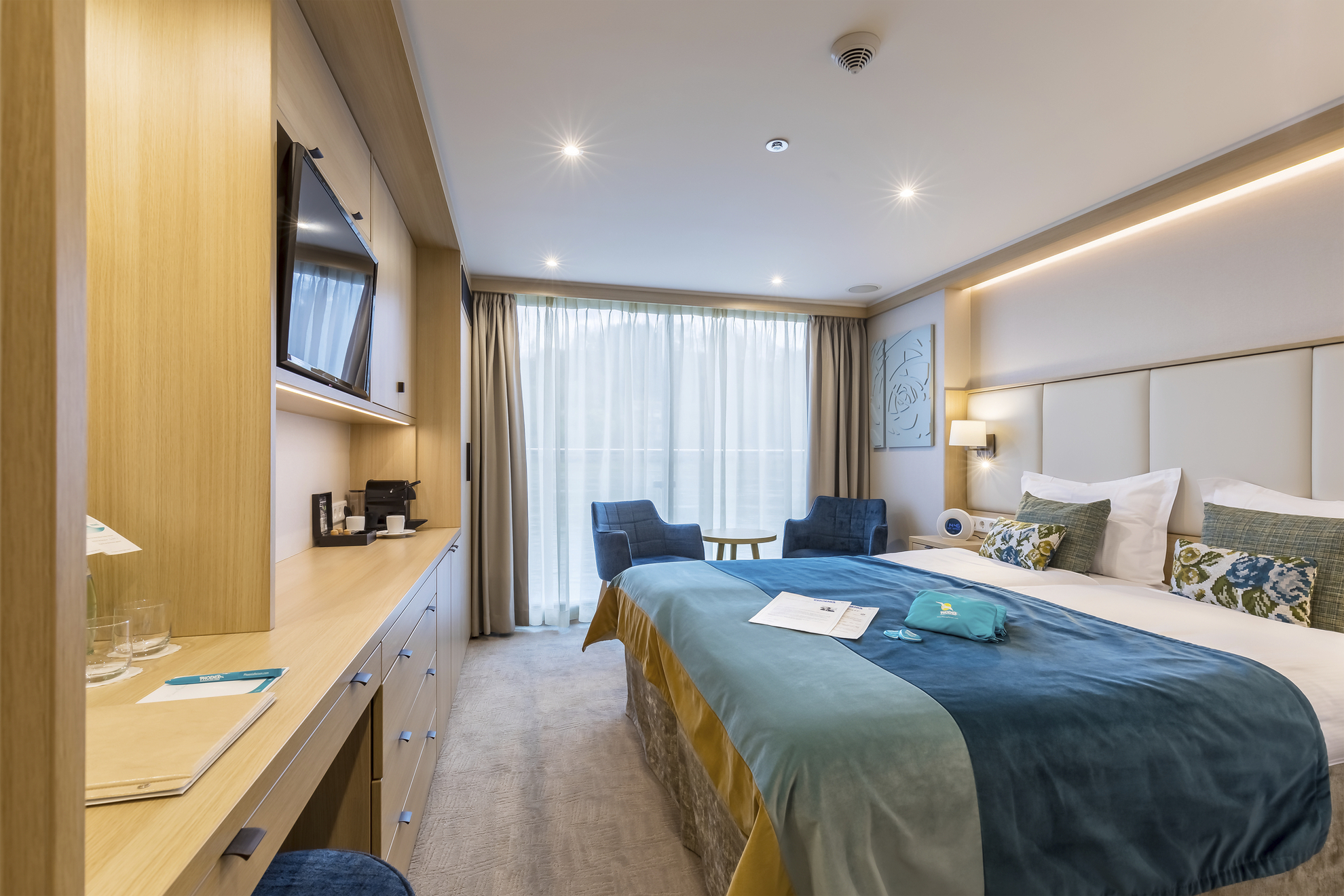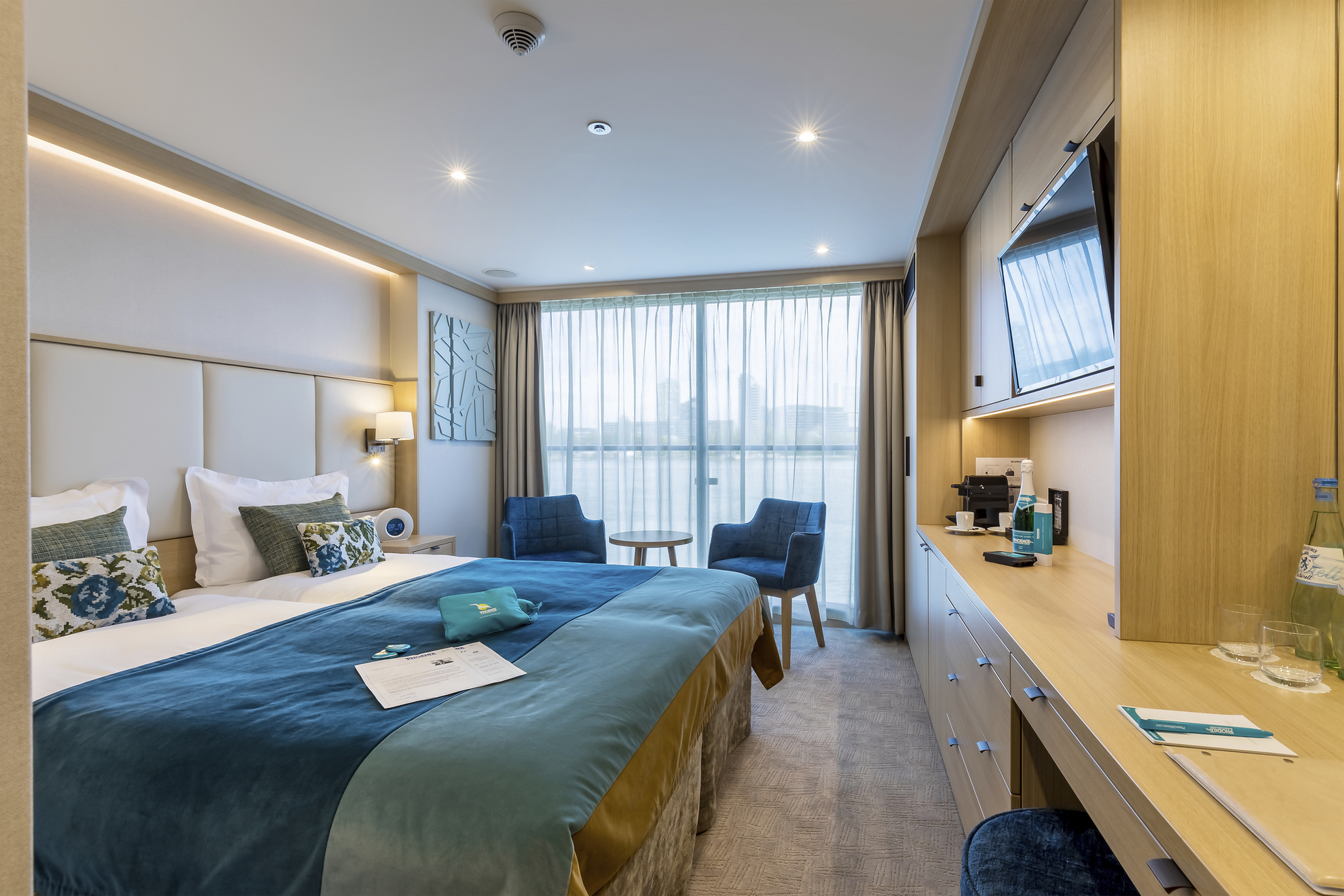 Bei Buchung einer Kabinenkategorie mit dem Logo erwartet Sie der Phoenix-Gold-Service, wie z.B. separate Einschiffung in deutschen Häfen, Begrüßungsüberraschung, frische Blumen, Coppeneur-Pralinen, 1 Flasche Champagner, Minibar mit Getränkeauswahl, 3 GB Internetzugang frei (je Reiseabschnitt),  2 hochwertige Ferngläser pro Kabine zur Benutzung an Bord, ein spezielles Kosmetik-Set im Bad und Priorität bei Landgängen.