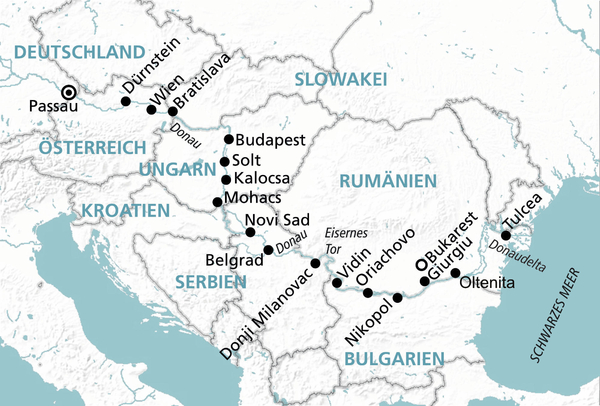 Mit unserem Premium-Schiff MS Anna Katharina erleben Sie die Donau ganz intensiv. Stromabwärts kreuzen Sie durch die Schlögener Schlinge und besuchen zum Auftakt die charmante Donaumetropole Wien. Genießen Sie die Landschaft Südungarns auf der Flussfahrt Richtung Serbien. Nach Passage der Flussenge des "Eisernen Tores" erreichen Sie das Donaudelta mit seiner einzigartigen Flora und Fauna, das als Weltkulturerbe geschützt ist. Nach Aufenthalten in Bulgarien wird in Belgrad festgemacht. Anschließend steht wieder Ungarn auf dem Programm. Die Hauptstadt Budapest besticht durch ein beeindruckendes Stadtbild mit Fischerbastei, Kettenbrücke und Parlamentsgebäude. Über die slowakische Hauptstadt Bratislava geht es nach einem Besuch des hübschen Ortes Dürnstein durch die Wachau wieder zurück nach Passau.