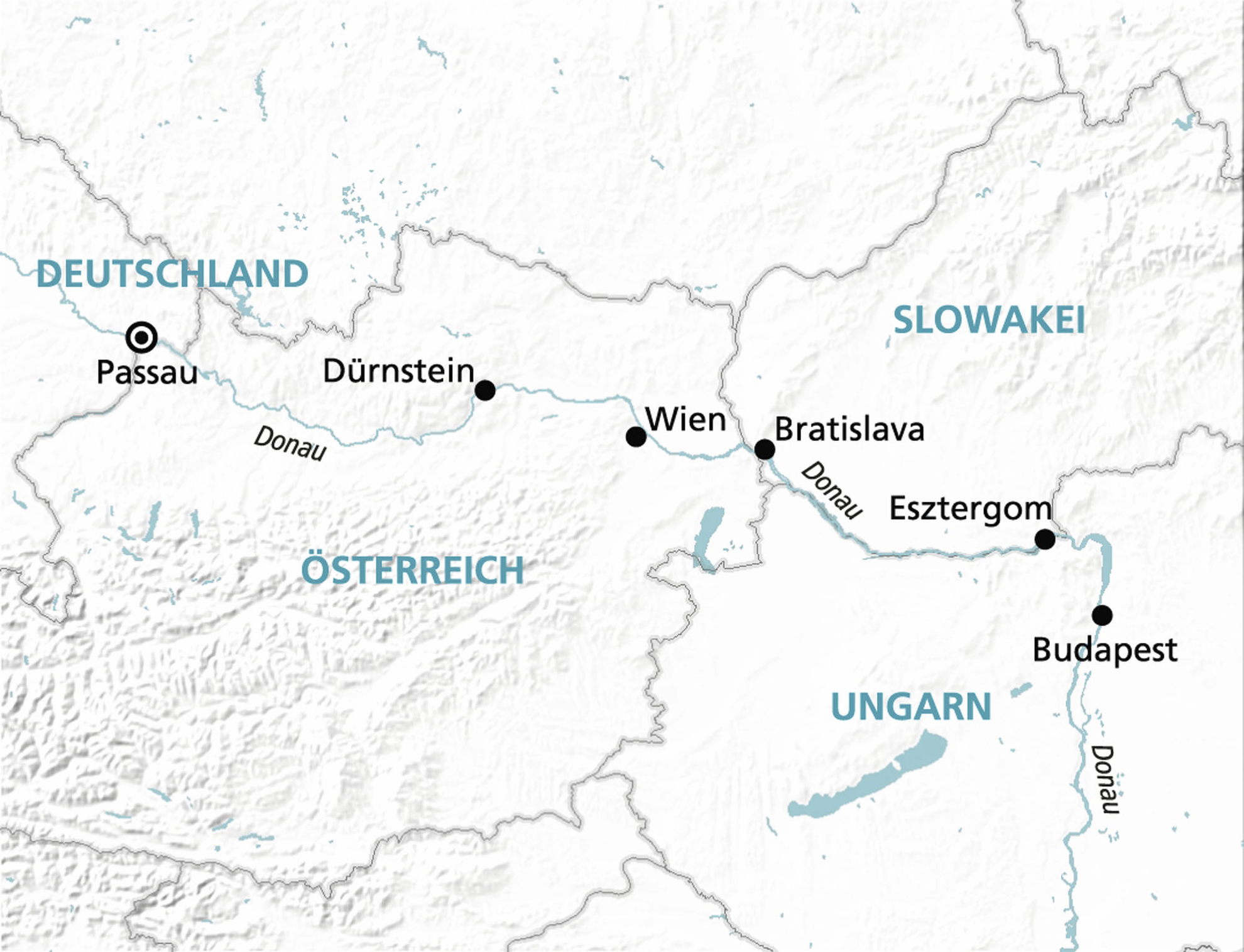Diese Kreuzfahrt eignet sich besonders für den Urlaub zwischendurch oder um einfach mal eine Flussreise auszuprobieren. Ihre Reise beginnt in der Drei-Flüsse-Stadt Passau, wo Donau, Inn und Ilz zusammenfließen. Nach einer Übernachtung an Bord unseres First-Class-Schiffs MS Antonia erreichen Sie Österreichs Hauptstadt, das charmante Wien. Auf einer Stadtrundfahrt besichtigen Sie die Hauptsehenswürdigkeiten Wiens. In Esztergom sehen Sie die üppige Landschaft des Donauknies und den großkuppeligen Dom. Noch am selben Tag legen Sie in Budapest an. Auf Stadtrundfahrt und Abendausflug zeigen wir Ihnen viele Sehenswürdigkeiten. Am vierten Tag genießen Sie an Bord die Donaulandschaft, bevor Ihr Schiff nachmittags in Bratislava, Hauptstadt der Skowakei, erreicht. Dürnstein, das am Donauufer gelegen hübsche Barockstädtchen, können Sie zu Fuß besichtigen oder Sie lernen auf unserem Ausflug die malerische Wachau kennen.