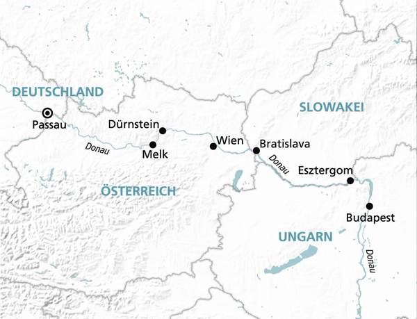 Passau - Dürnstein - Wien - Budapest - Bratislava - Melk - Passau