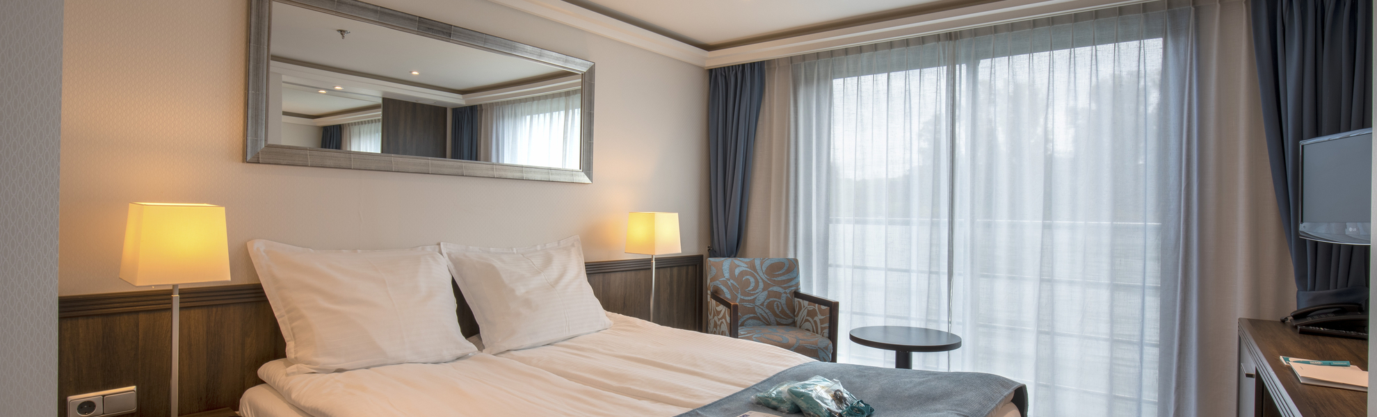 Alle Kabinen liegen außen, sind komfortabel eingerichtet mit französischem Balkon. Die Kabinen dieser Kategorie liegen im hinteren Bereich des Schiffes, bei fahrendem Schiff verstärkte Maschinengeräusche. Die Betten auf dem Saturn- und Oriondeck lassen sich wahlweise als Doppel- oder Einzelbett stellen.