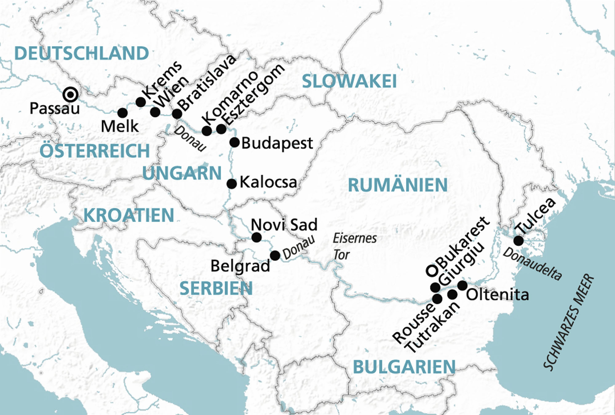 Passau - Wien - Budapest - Belgrad - "Eisernes Tor" - Donaudelta - Rousse - Bratislava - Krems - Passau