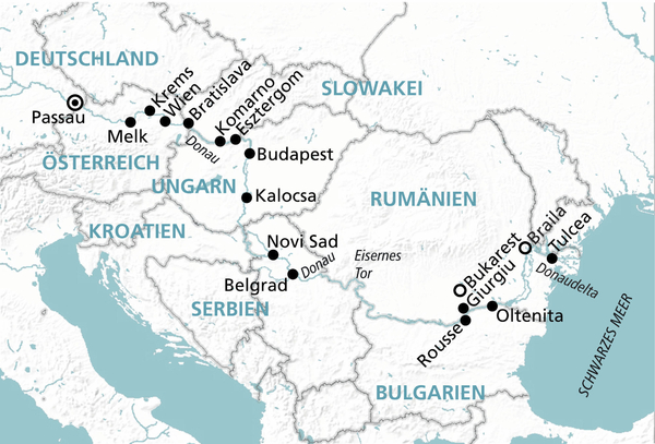 Passau - Wien - Budapest - Belgrad - "Eisernes Tor" - Donaudelta - Rousse - Bratislava - Krems - Passau