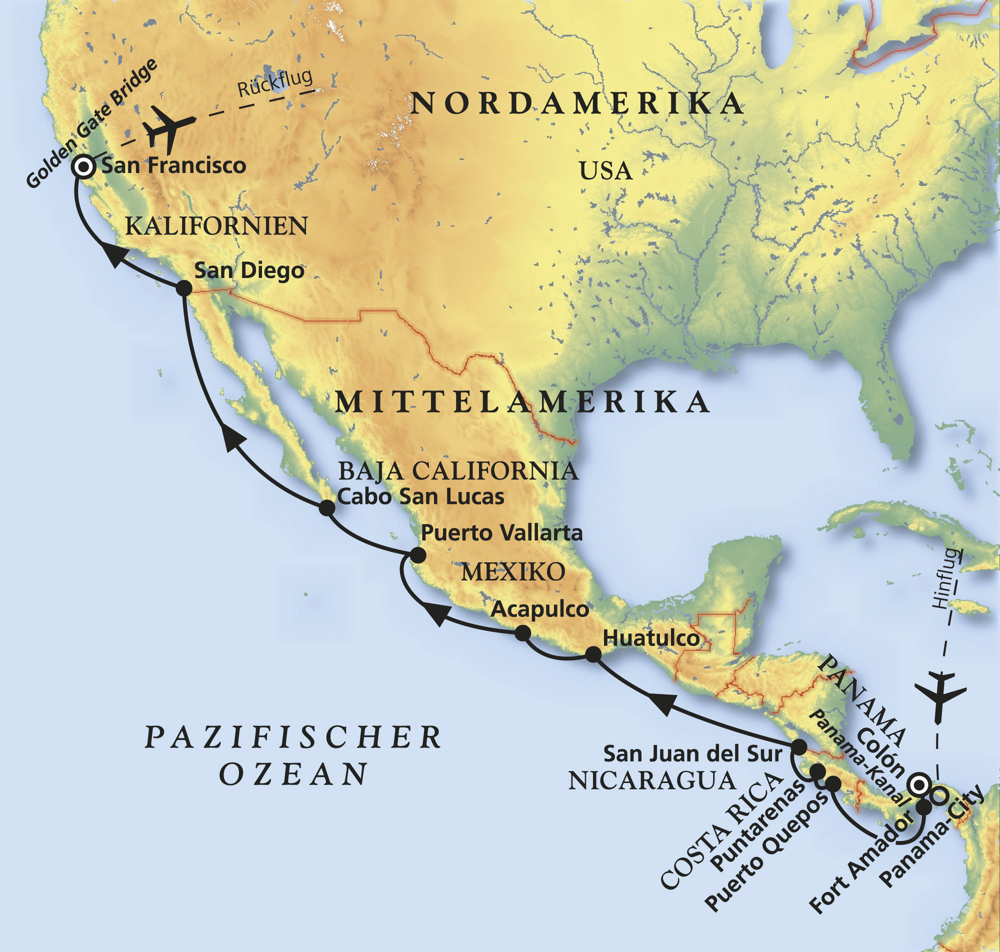 Colón - Panama-Kanal - Puntarenas - San Juan del Sur - Acapulco - Puerto Vallarta - San Diego - San Francisco