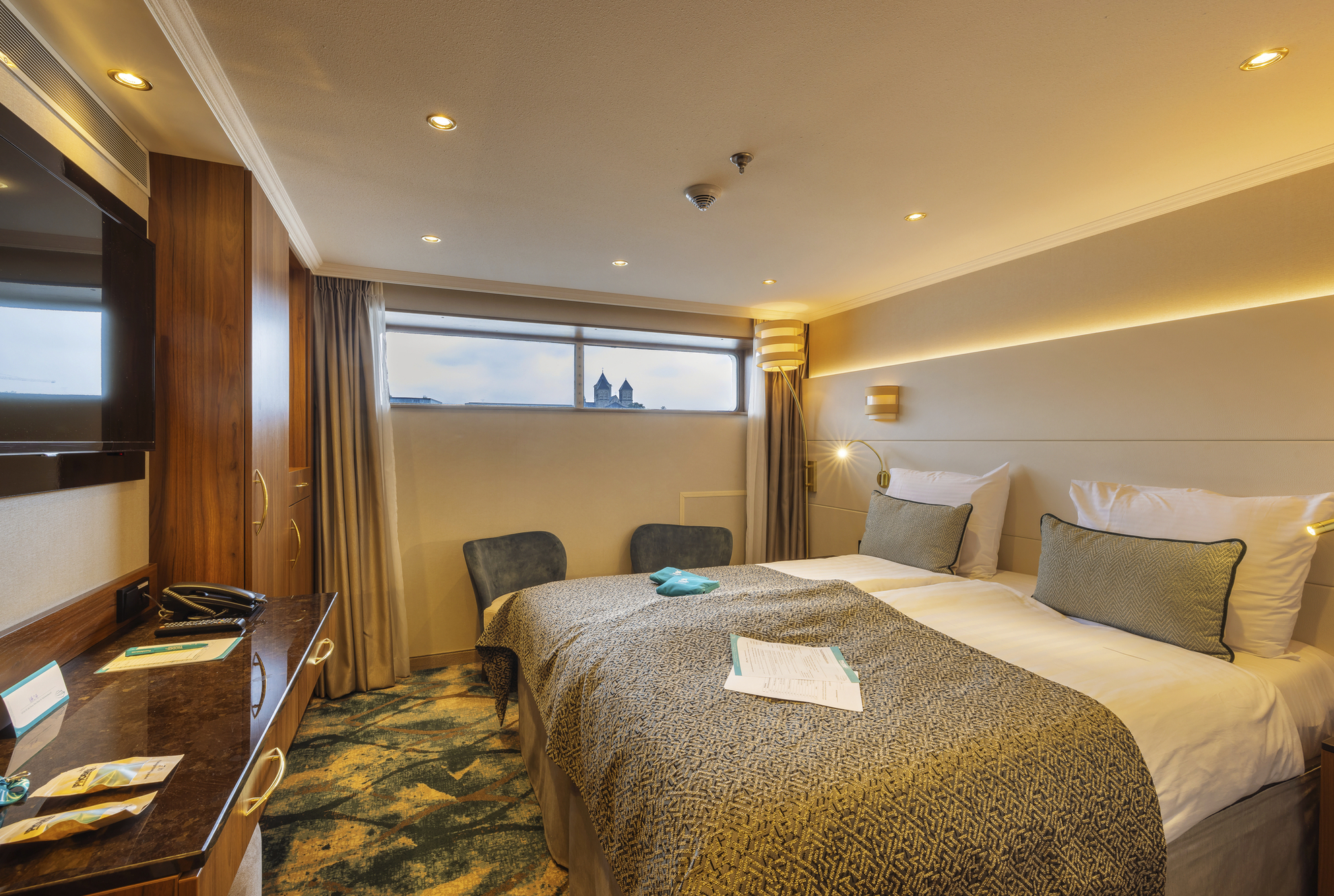 Alle Kabinen liegen außen und sind komfortabel und luxuriös eingerichtet mit kleinen Fenstern, die aus Sicherheitsgründen nicht zu öffnen sind. Die Betten lassen sich wahlweise als Doppel- oder Einzelbetten stellen. Die Kabinen dieser Kategorie liegen im hinteren Bereich des Schiffes, bei fahrendem Schiff verstärkte Maschinengeräusche.