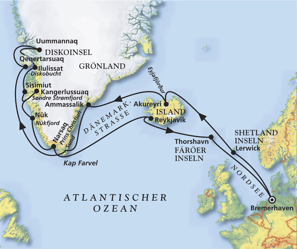 Bremerhaven - Lerwick - Akureyri - Ilulissat - Kangerlussuaq - Reykjavik - Bremerhaven
