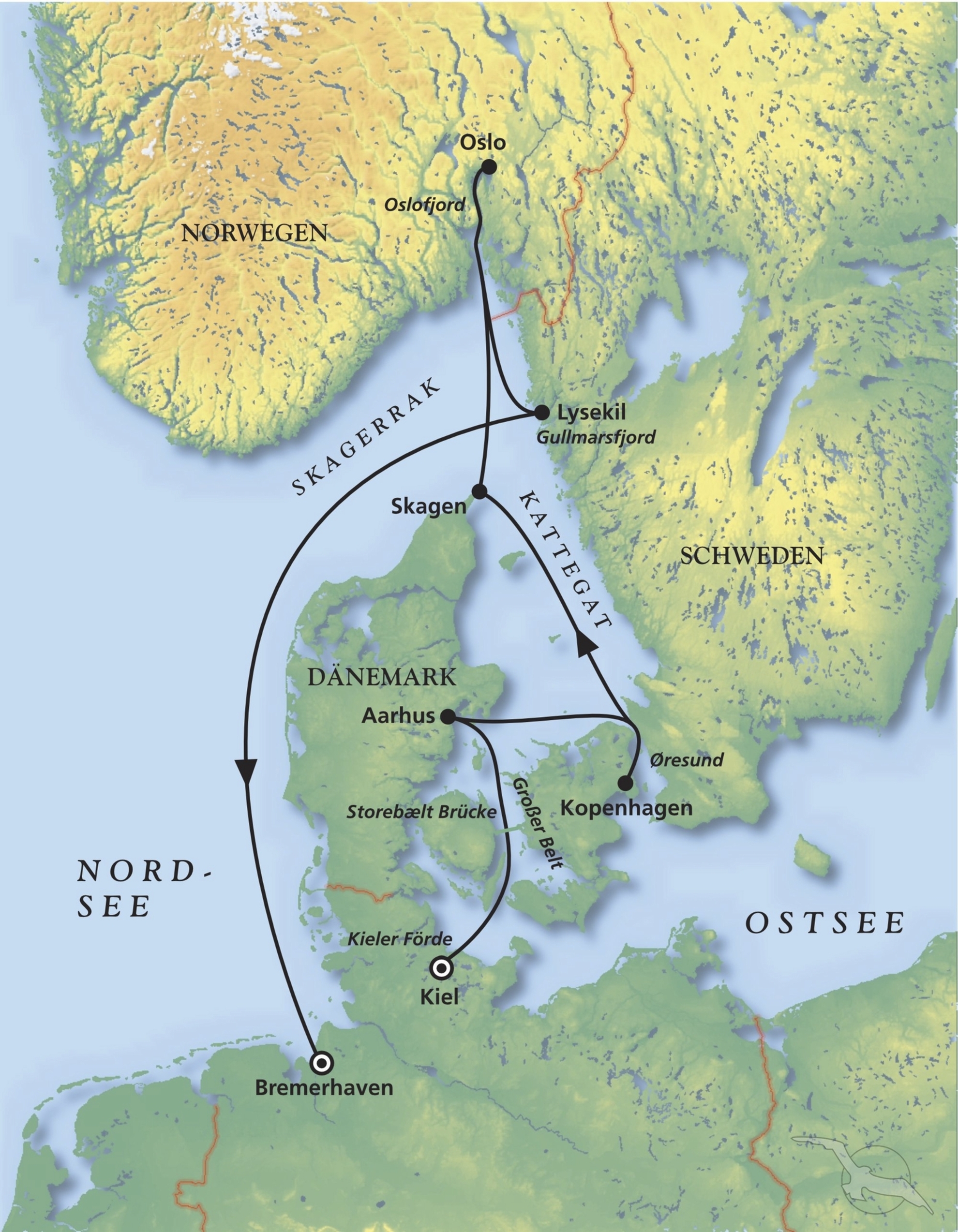Kiel - Aarhus - Kopenhagen - Skagen - Oslo - Lysekil - Bremerhaven
