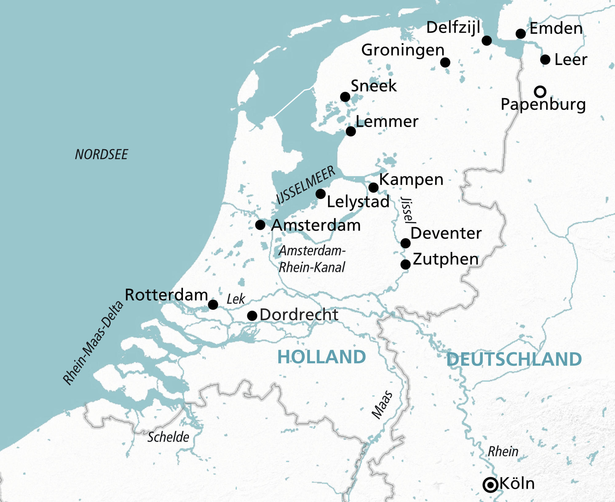 Köln - Rotterdam - Amsterdam - Lemmer - Leer - Emden - Sneek - Deventer - Köln