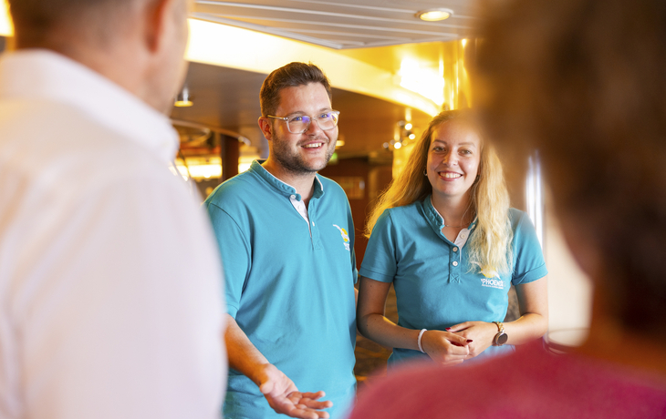 Bei Buchung einer Kabinenkategorie mit dem Logo erwartet Sie der Phoenix-Silber-Service, wie z.B. separate Einschiffung in deutschen Häfen, Begrüßungsüberraschung, frische Blumen, Coppeneur-Pralinen, 1 Flasche Sekt, Kapitänsempfang (ab einer Reisedauer von 7 Tagen).