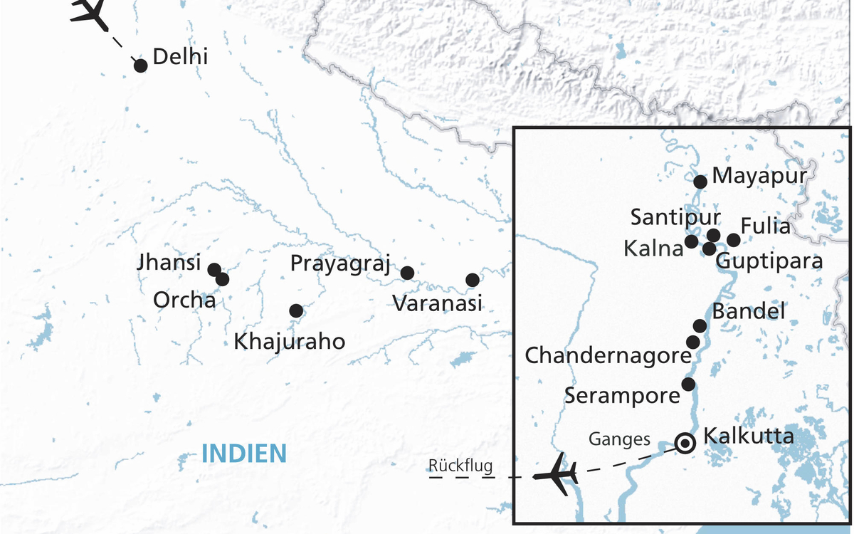 Indien, ein Land der Gegensätze, verbreitet einen ganz eigenen Zauber, der Sie auf dieser Reise in seinen Bann ziehen wird. Ihre Reise beginnt in Delhi. Nach verschiedenen Besichtigungen in der Haupstadt Indiens fliegen Sie weiter nach Varanasi, die als eine der ältesten Städte Indiens und als heiligste Stadt des Hinduismus gilt. In Kalkutta beginnt und endet Ihre Flussreise mit Ganges Voyager, wo noch die Hinterlassenschaften der Briten allgegenwärtig sind. Das Gewirr der Pilgerscharen, zahlreiche Tempel, ehrwürdige Brahmanen, das Klingen tausender Glöckchen, heilige Feuer, der Duft von Räucherstäbchen und Blumenketten sind erlebter Ausdruck tiefer Spiritualität. Idyllische Flussfahrten durch das ländliche Indien, Paläste und Moscheen, das koloniale Westbengalen, Mogul-Festungen, buddhistische Klöster und Sikhtempel sind nur einige der einzigartigen Reiseerlebnisse, die Ihnen sicher noch lange im Gedächtnis bleiben werden.