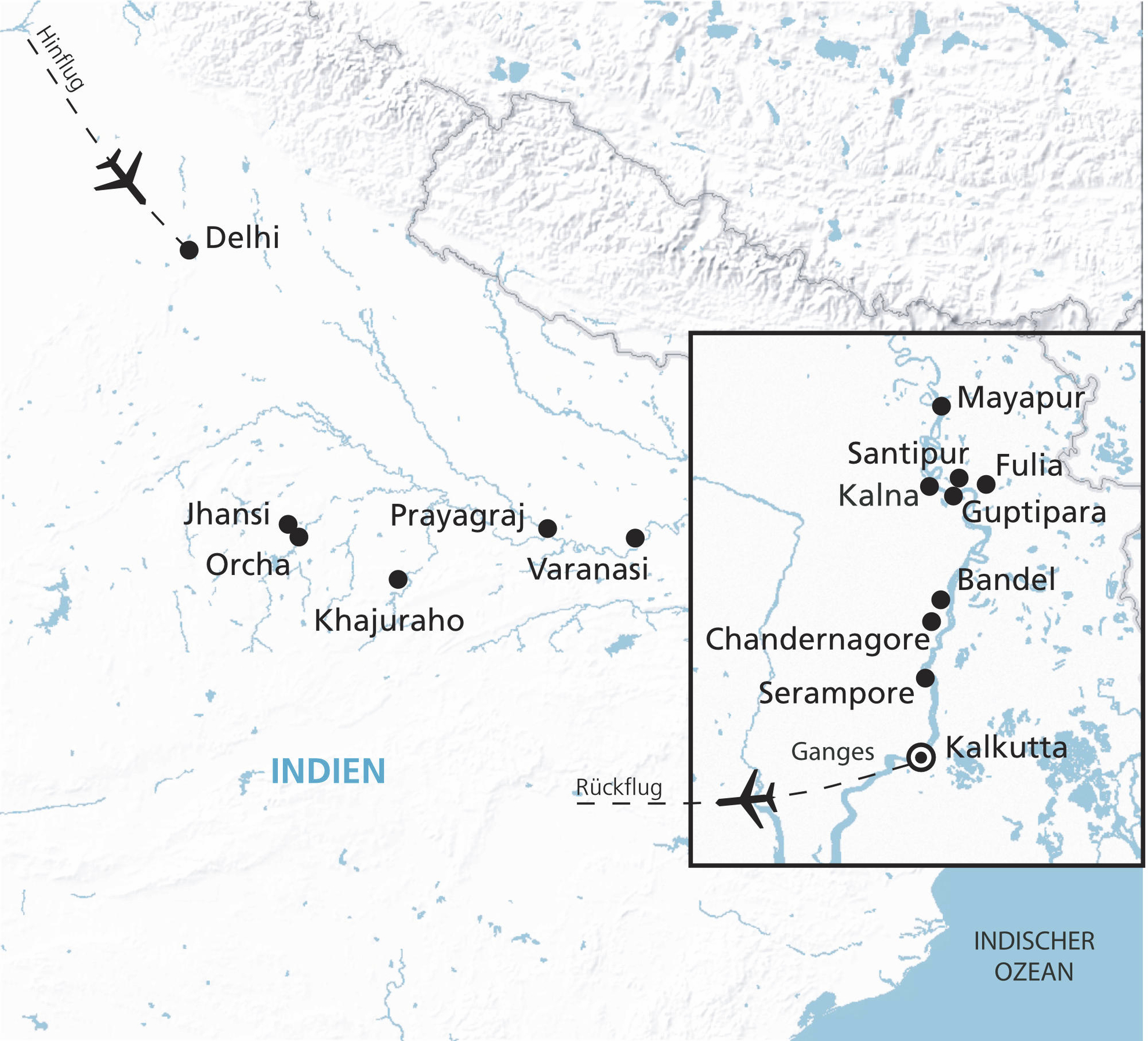 Indien, ein Land der Gegensätze, verbreitet einen ganz eigenen Zauber, der Sie auf dieser Reise in seinen Bann ziehen wird. Ihre Reise beginnt in Delhi. Nach verschiedenen Besichtigungen in der Haupstadt Indiens fliegen Sie weiter nach Varanasi, die als eine der ältesten Städte Indiens und als heiligste Stadt des Hinduismus gilt. In Kalkutta beginnt und endet Ihre Flussreise mit Ganges Voyager, wo noch die Hinterlassenschaften der Briten allgegenwärtig sind. Das Gewirr der Pilgerscharen, zahlreiche Tempel, ehrwürdige Brahmanen, das Klingen tausender Glöckchen, heilige Feuer, der Duft von Räucherstäbchen und Blumenketten sind erlebter Ausdruck tiefer Spiritualität. Idyllische Flussfahrten durch das ländliche Indien, Paläste und Moscheen, das koloniale Westbengalen, Mogul-Festungen, buddhistische Klöster und Sikhtempel sind nur einige der einzigartigen Reiseerlebnisse, die Ihnen sicher noch lange im Gedächtnis bleiben werden.