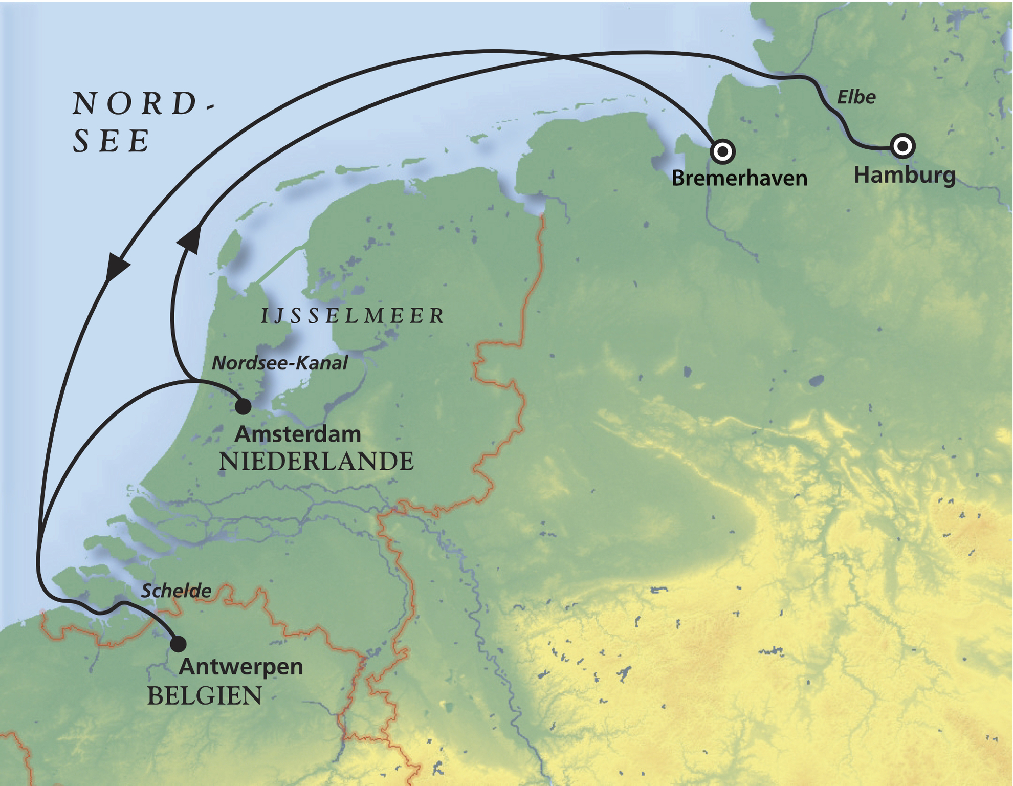 Bremerhaven - Antwerpen - Amsterdam - Hamburg