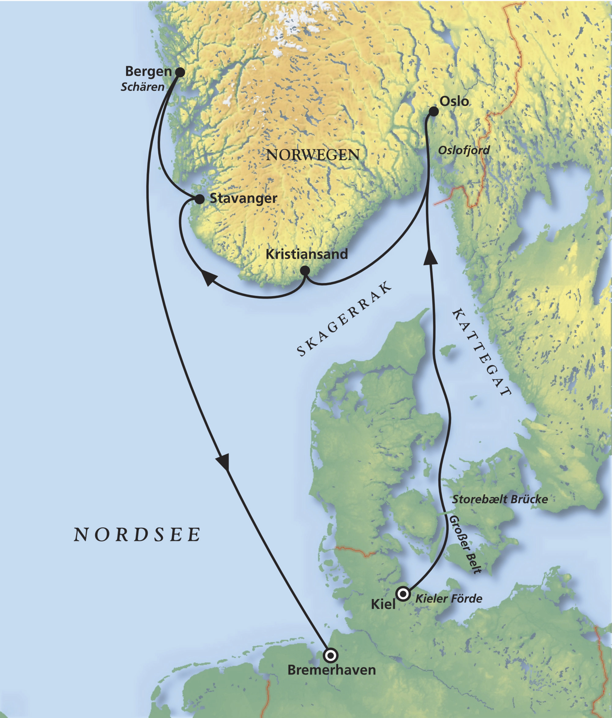 Kiel - Oslo - Kristiansand - Stavanger - Bergen - Bremerhaven