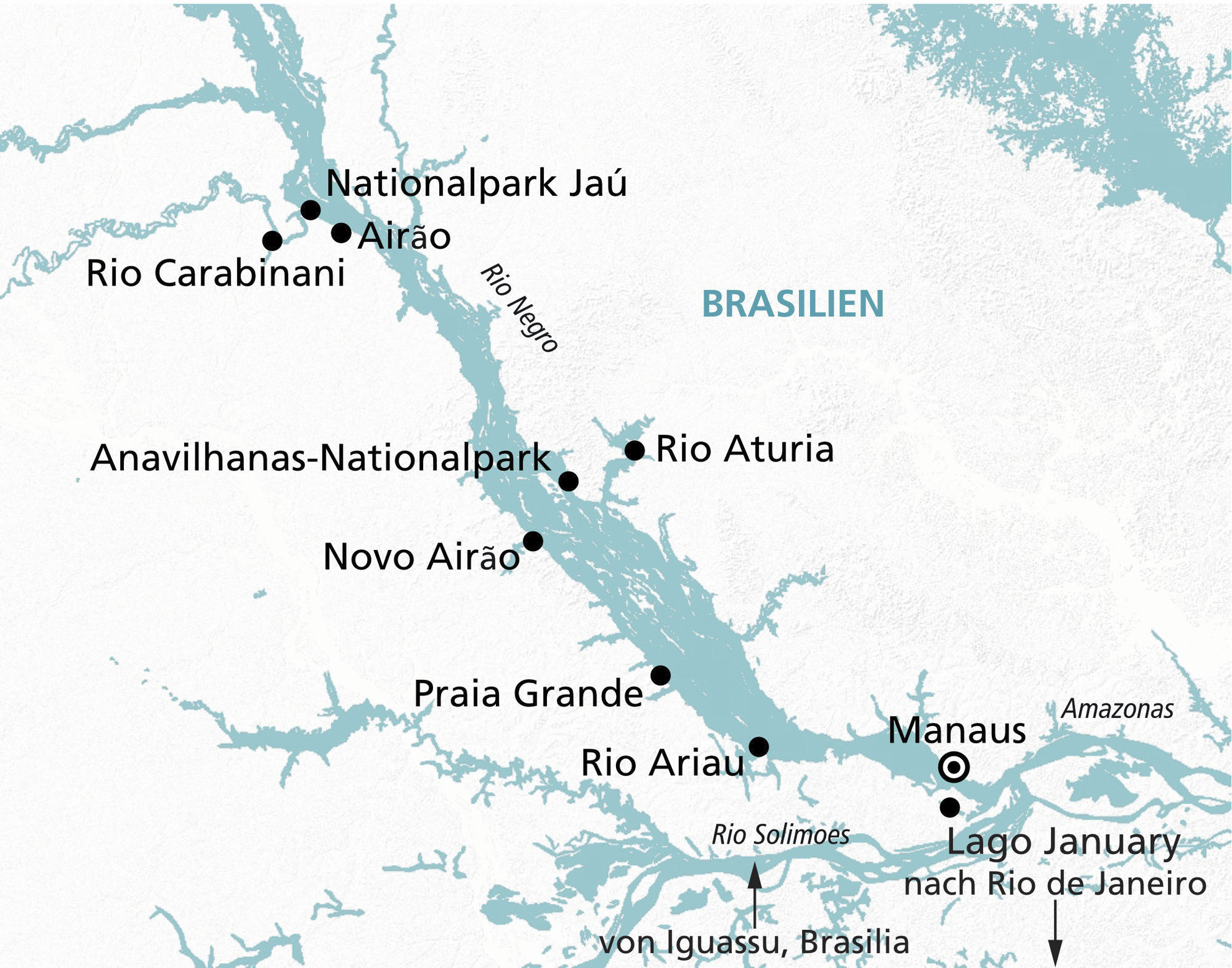 Landprogramm Iguassu - Brasilia, Flussreise Manaus - Rio Negro - Amazonas, Landprogramm Rio de Janeiro