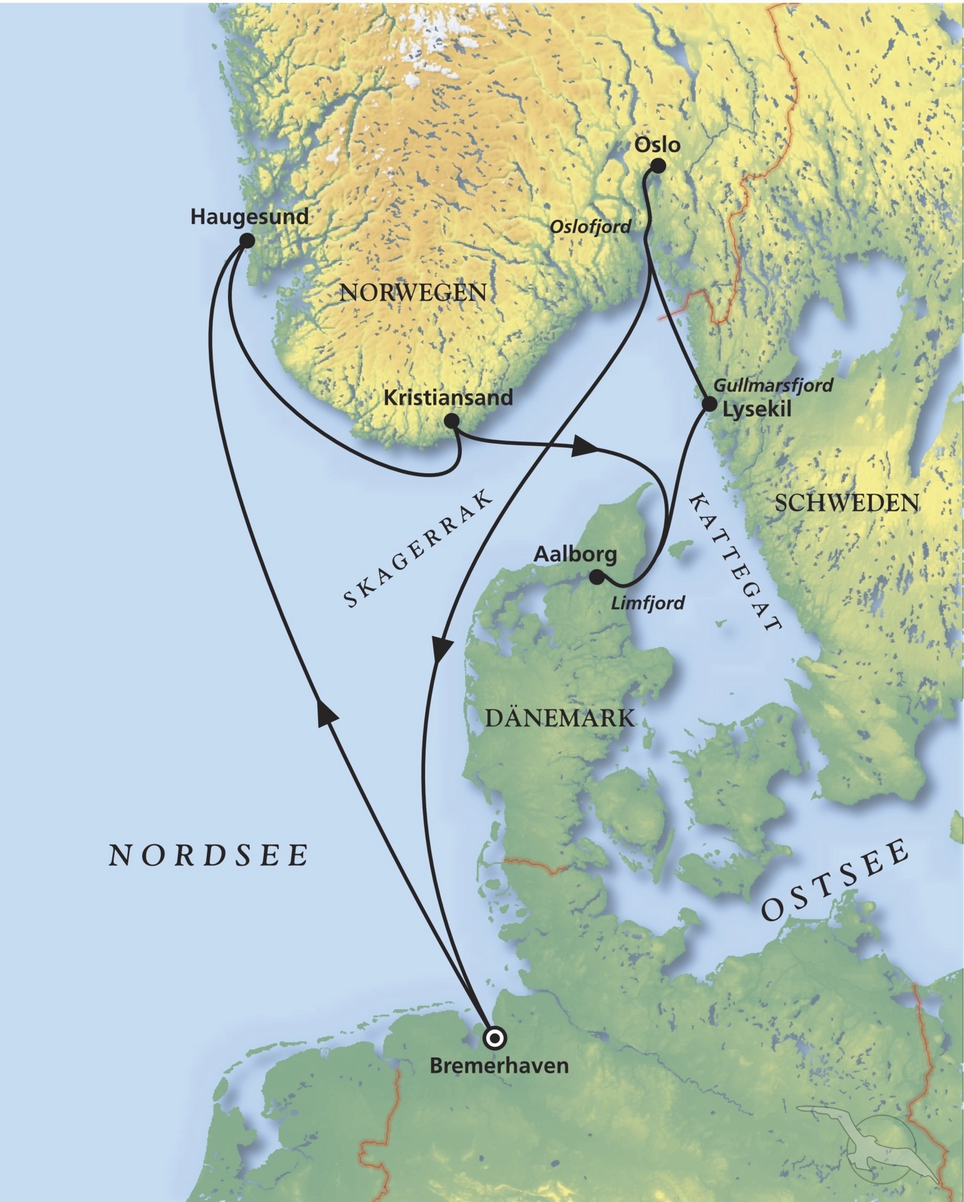 Haugesund ist eine kleine Handelsstadt mit rund 36.000 Einwohnern, die etwa in der Mitte zwischen Bergen und Stavanger liegt. Die Expansion der Stadt Haugesund gründet sich vor allem auf den Heringsboom im 19. Jh. Haugesund erhielt erst 1854 die Stadtrechte und bezeichnet sich als "Junge Stadt in alter Schale". Sie liegt am Karmsund, dem historischen "Nordvegen", Namensgeber für Norwegen. Über den Karmsund führt seit 1955 die 690 m lange Karmsundbrücke in die Nachbarkommune Karmøy. Sie fahren am Rathaus vorbei und kommen zur Salhusstraße mit schönen alten Häusern der Reeder und weiter zum Steinsfjellet. Hier genießen Sie bei gutem Wetter die schöne Aussicht auf die vorgelagerten Inseln. Weiterfahrt zum Haraldshaugen, einem nationalen Denkmal, das zur Erinnerung an Harald Hårfagre ("Schönhaar") und seinen Kampf um ein vereintes Norwegen errichtet wurde. Auf dem Rückweg zum Schiff sammeln Sie weitere Eindrücke von der Architektur und den Denkmälern sowie deren Geschichte.