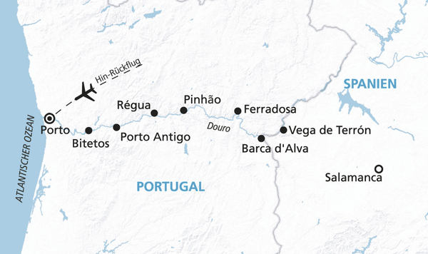In diesem Jahr bieten wir wieder die beliebte Reise auf dem Douro in neun Tagen mit anschließendem Nachprogramm an der Algarve auf Wunsch an. Portugals Fluss hat viel zu bieten. Die einzigartige Landschaft, gepaart mit interessanten Zielen und deren Sehenswürdigkeiten, lassen keine Langeweile aufkommen. In Porto, der Heimat des Portweins, startet Ihre Reise mit unserer Magellan. Lernen Sie auf einer Stadtrundfahrt diese reizende Stadt kennen. Von Régua aus bieten wir einen Ausflug nach Vila Real an. Dort besichtigen Sie die Kathedrale, den Mateus-Palast mit seinen Gärten sowie zahlreiche andere Paläste und Herrenhäuser. Der schönste Teil des Douros erwartet Sie an der spanischen Grenze in Barca d’Alva. Der Ausflug nach Salamanca, UNESCO-Weltkulturgut, gehört zu den Höhepunkten dieser Reise. Wir empfehlen im Anschluss eine Bade-Verlängerung an einem Traumstrand der Algarve-Küste.